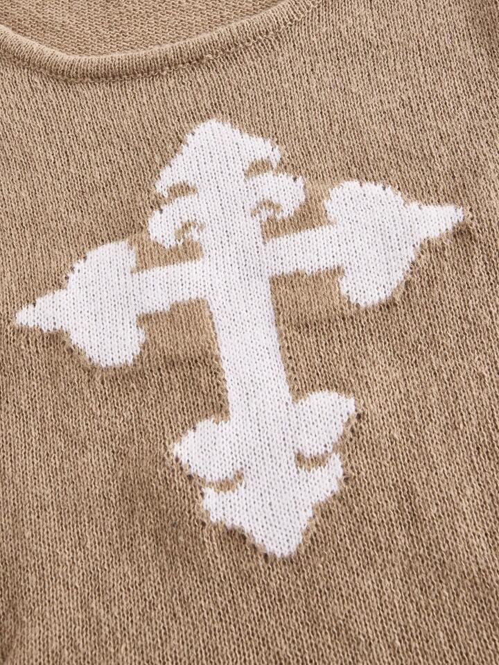Grunge Punk Suéter Desgastado Con Patrón Cruzado