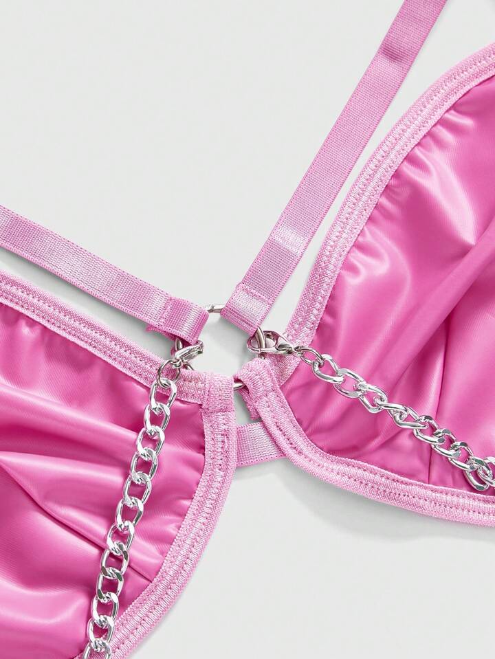 Grunge Punk Bralette triangular con cadena de metal para festival de punk rock oscuro