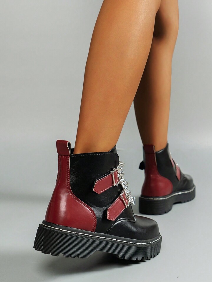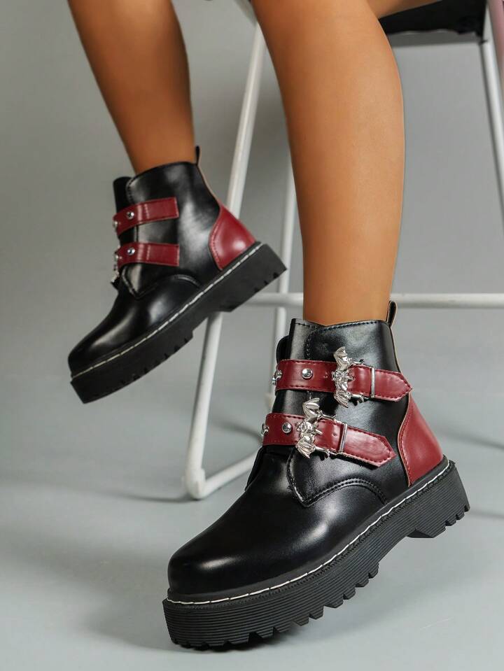 Grunge Punk Botas estilo punk oscuro con suela gruesa, estilo británico, hebilla de cinturón de metal con murciélago remachado, ideal para estudiantes