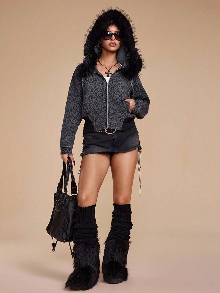 Grunge Punk Jeans acampanados de mujer con bolsillos con remaches, cremallera y bordados, de talle bajo y estilo punk desgastado