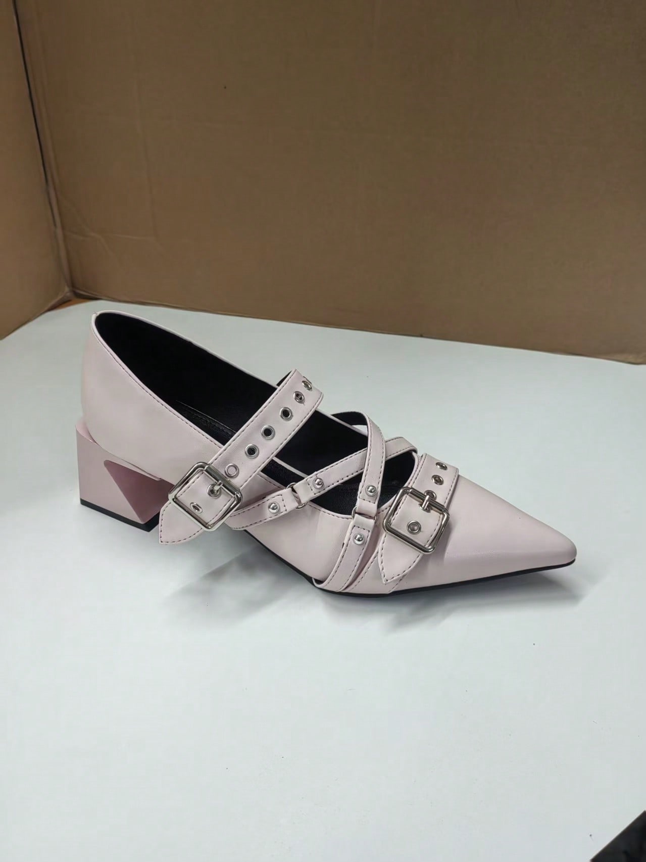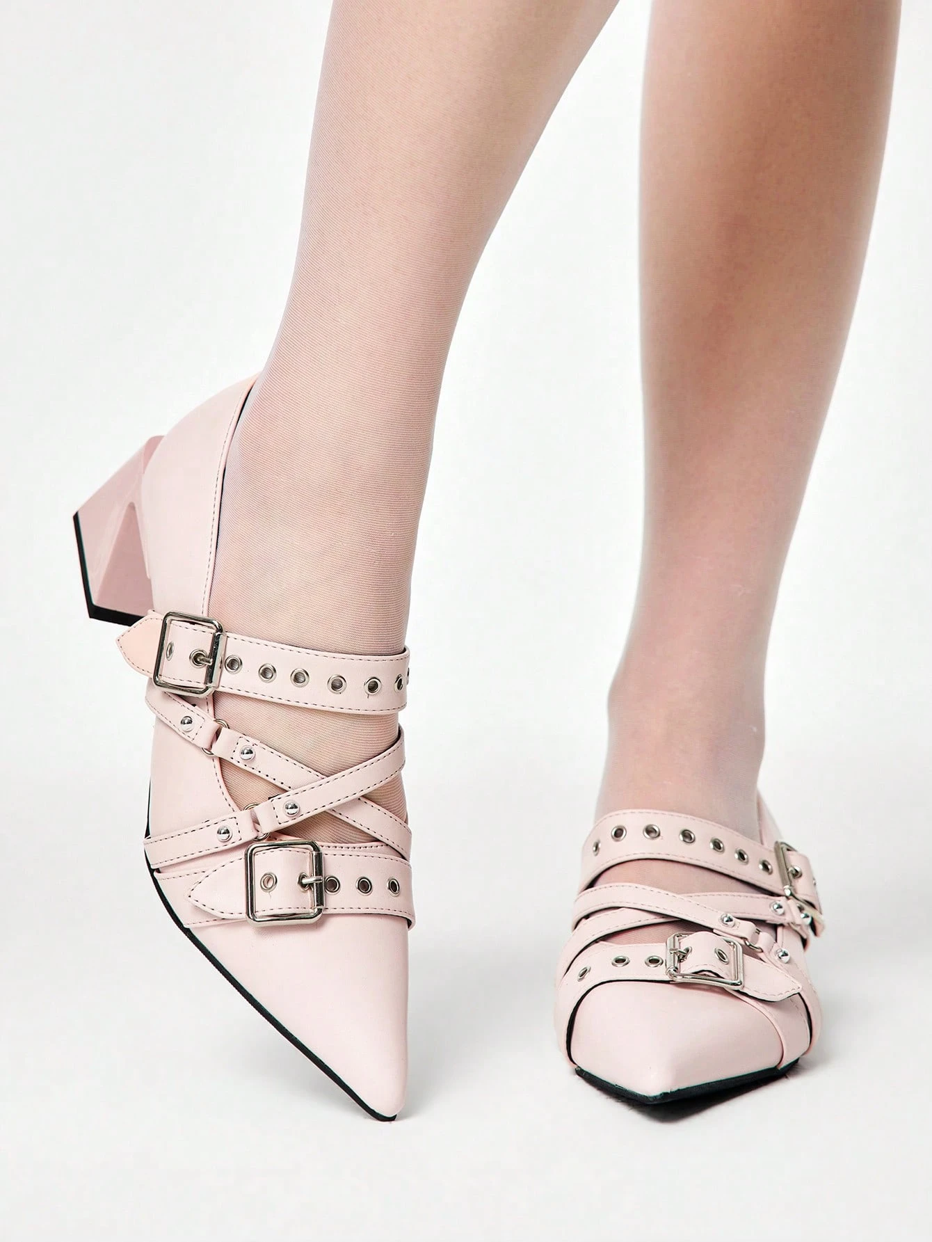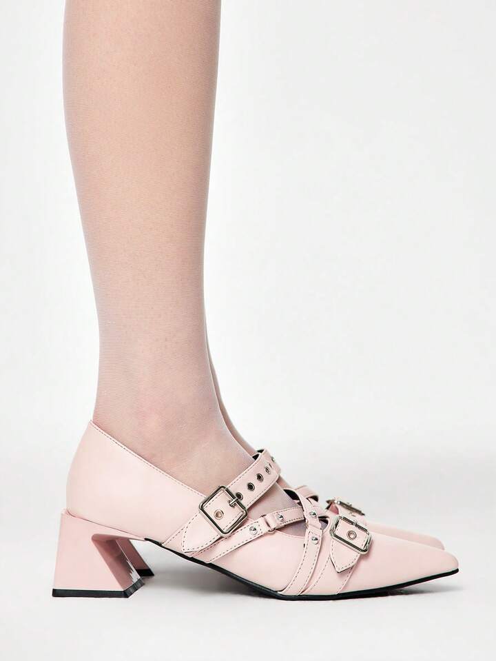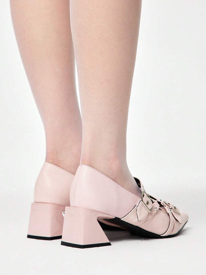 Grunge Punk Elegantes tacones gruesos de punta fina con acabado lacado para Navidad