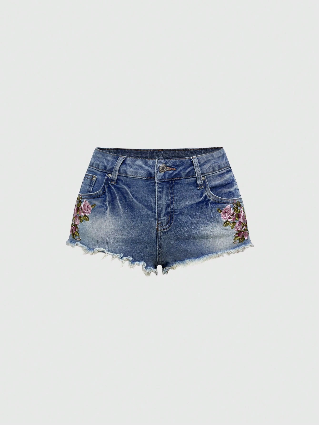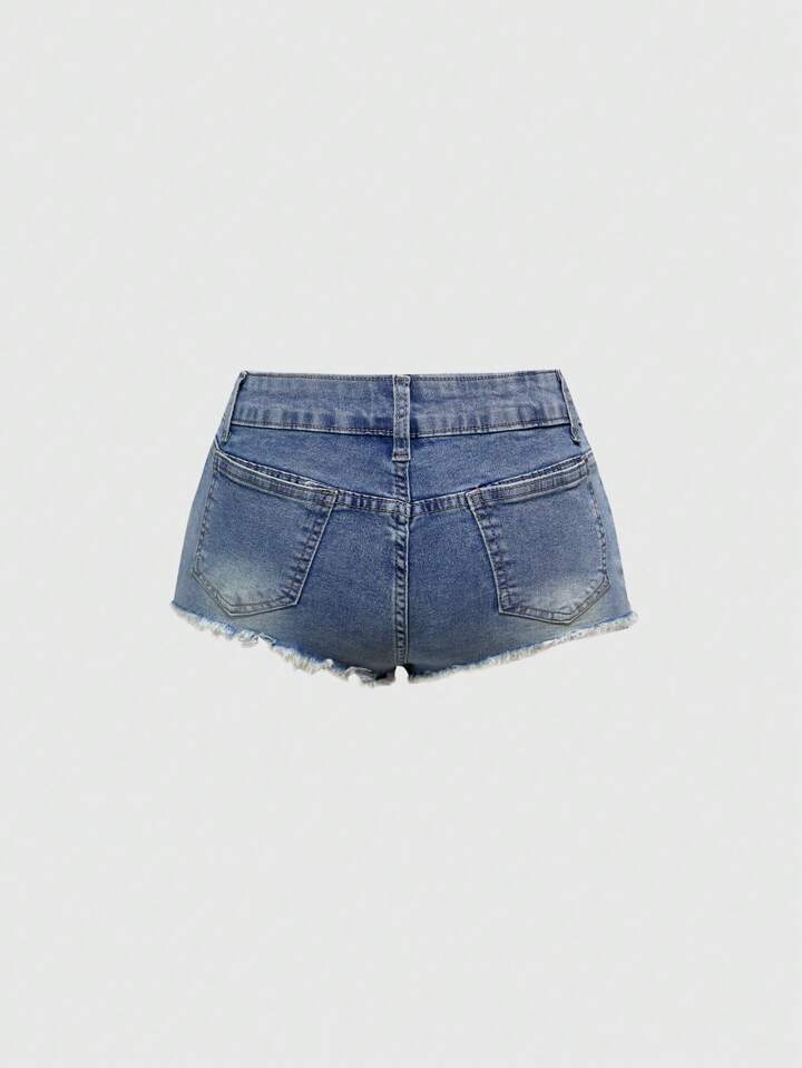 Grunge Punk Shorts de mezclilla sexy ajustados al Body con bolsillo bordado y dobladillo deshilachado