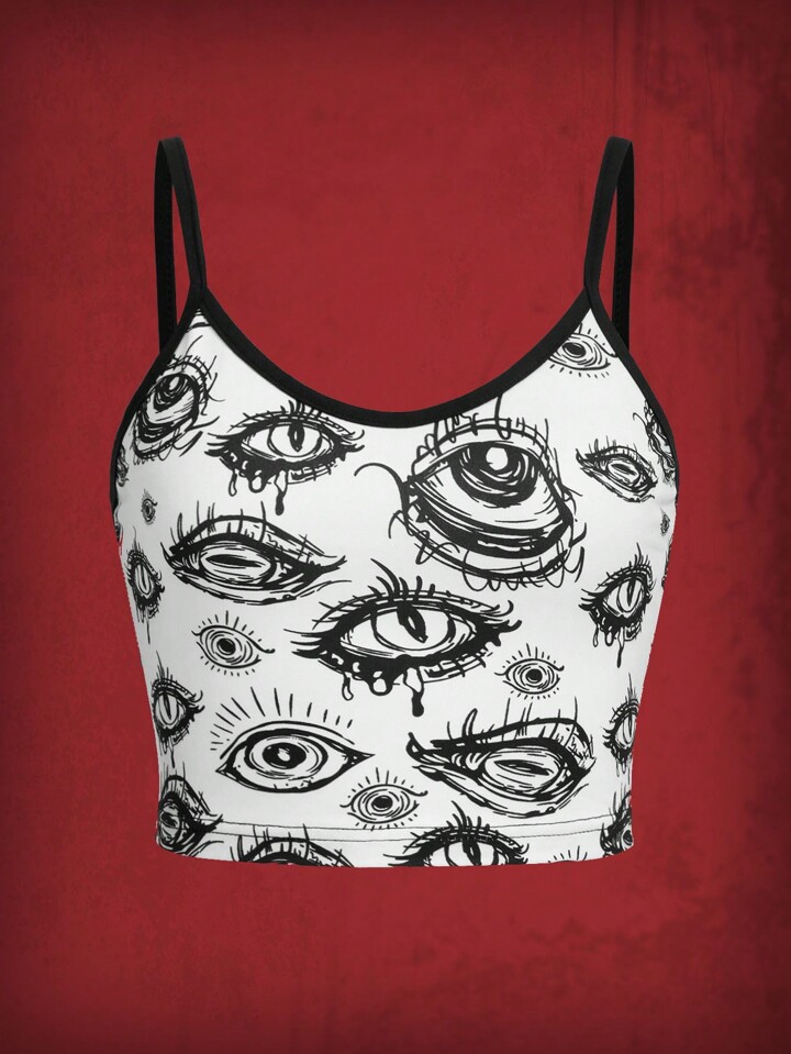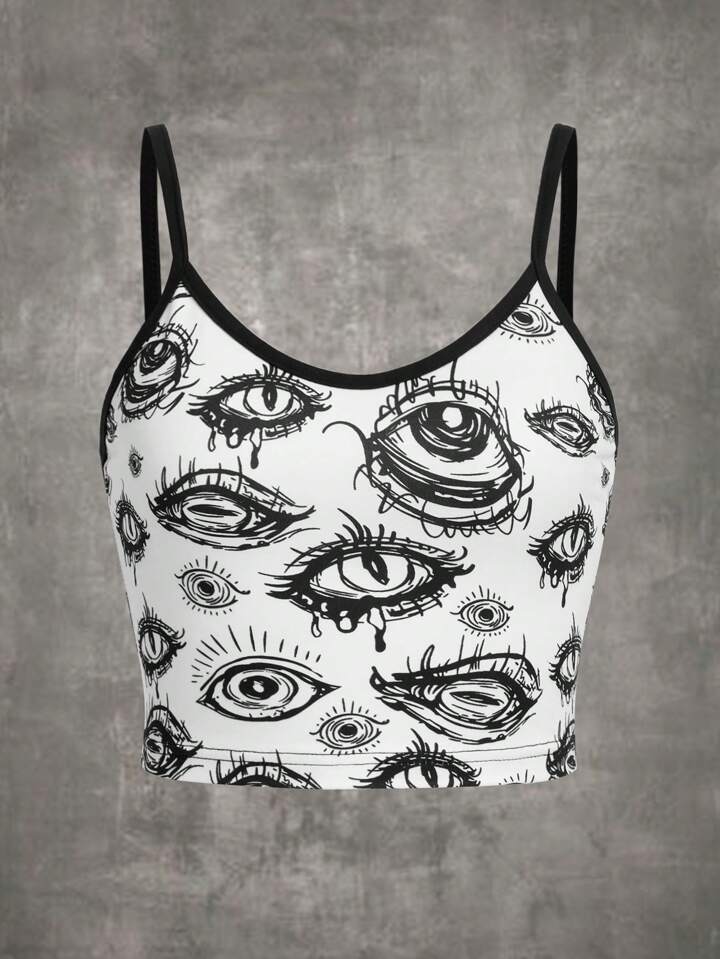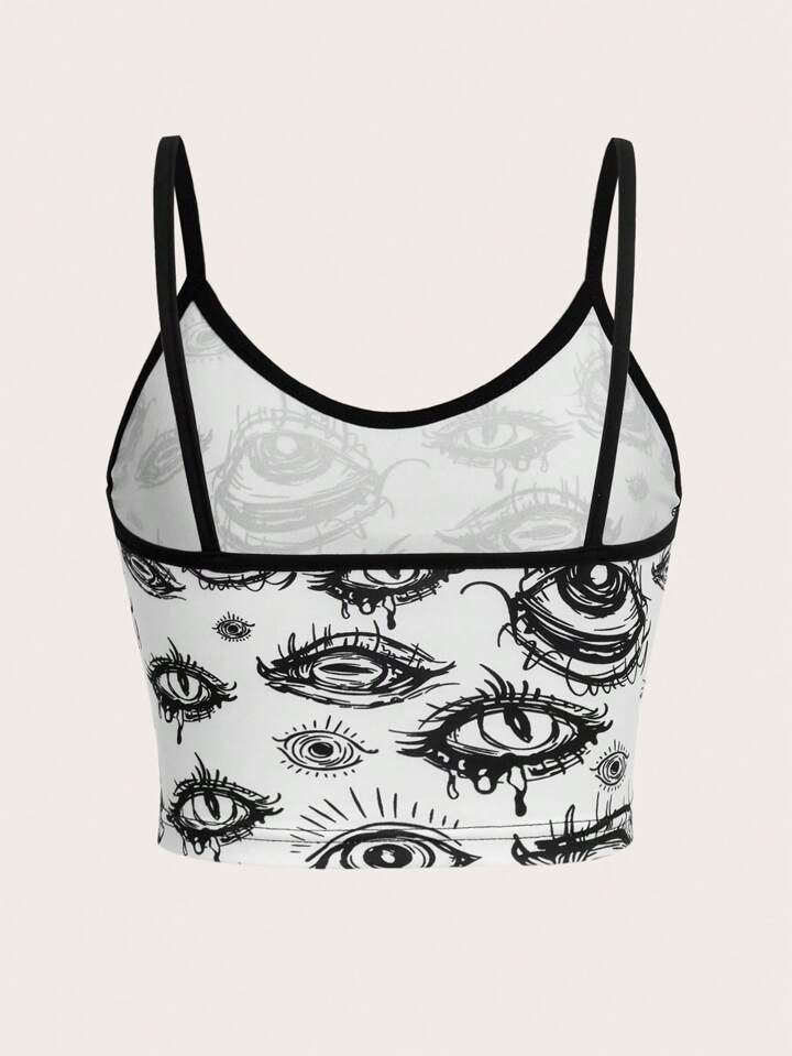 Grunge Punk Top de tirantes con estampado de ojos y ribete contrastante, para la escuela