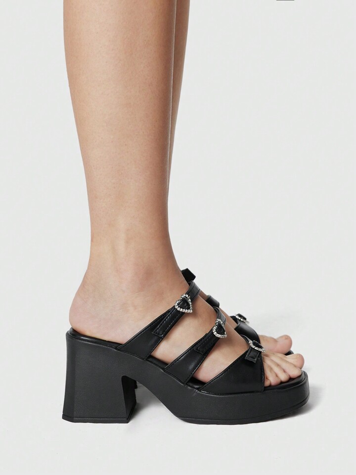 Grunge Punk Zapatos de mujer de moda, diseño de hebilla de metal, sandalia plataforma de tacón plano (7.5cm) de estilo vintage en piel sintética de color negro, adecuado para compras de verano, citas y otras ocasiones