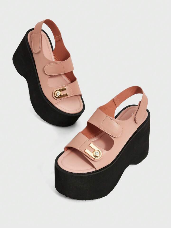 Grunge Punk Sandalias de plataforma de tacón súper alto de moda para mujeres, con hebilla de doble correa con forma de U y diseño calado de punta abierta con cristales