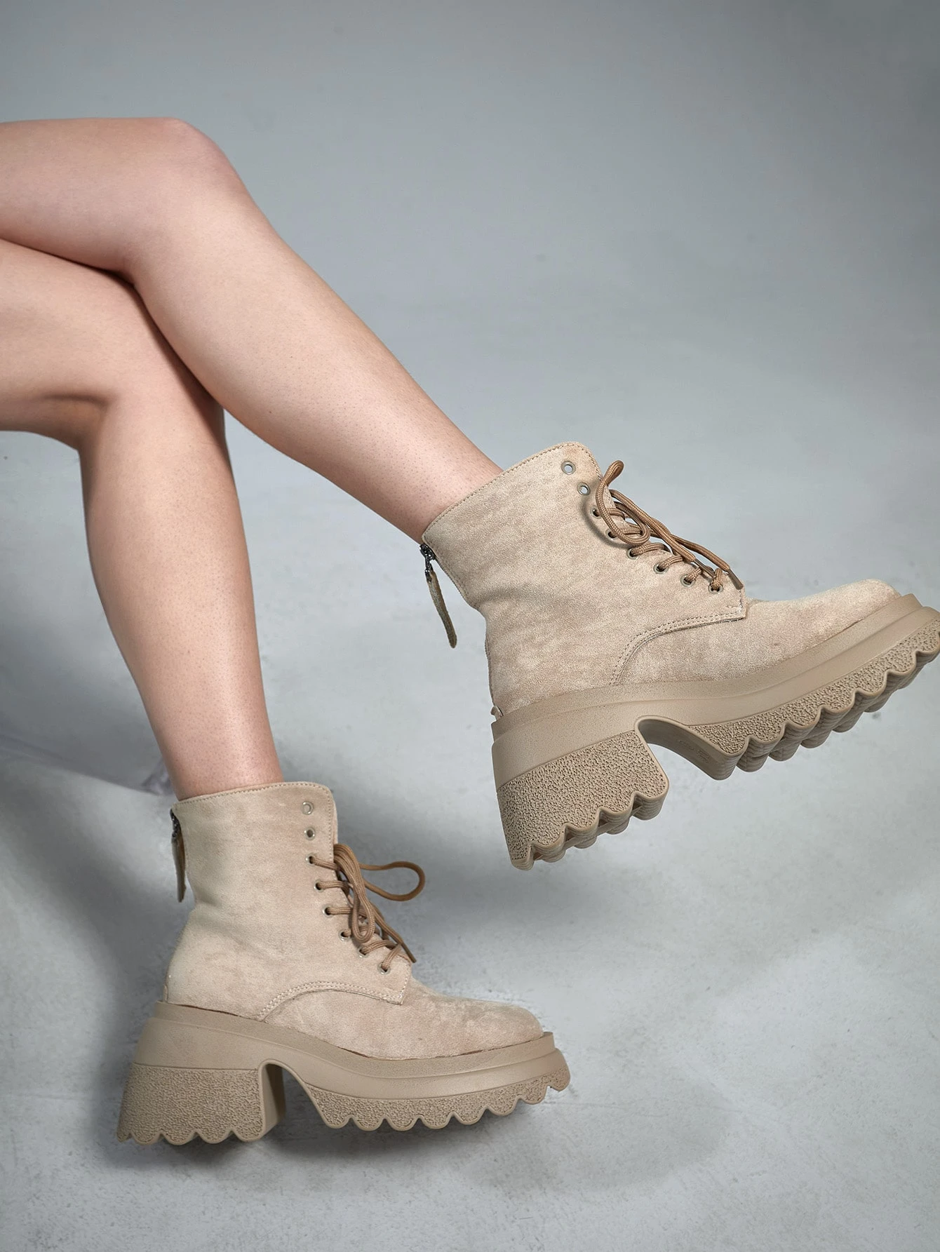 Grunge Punk Botas de combate de serraje falso de punta cuadrada con cordón delantero