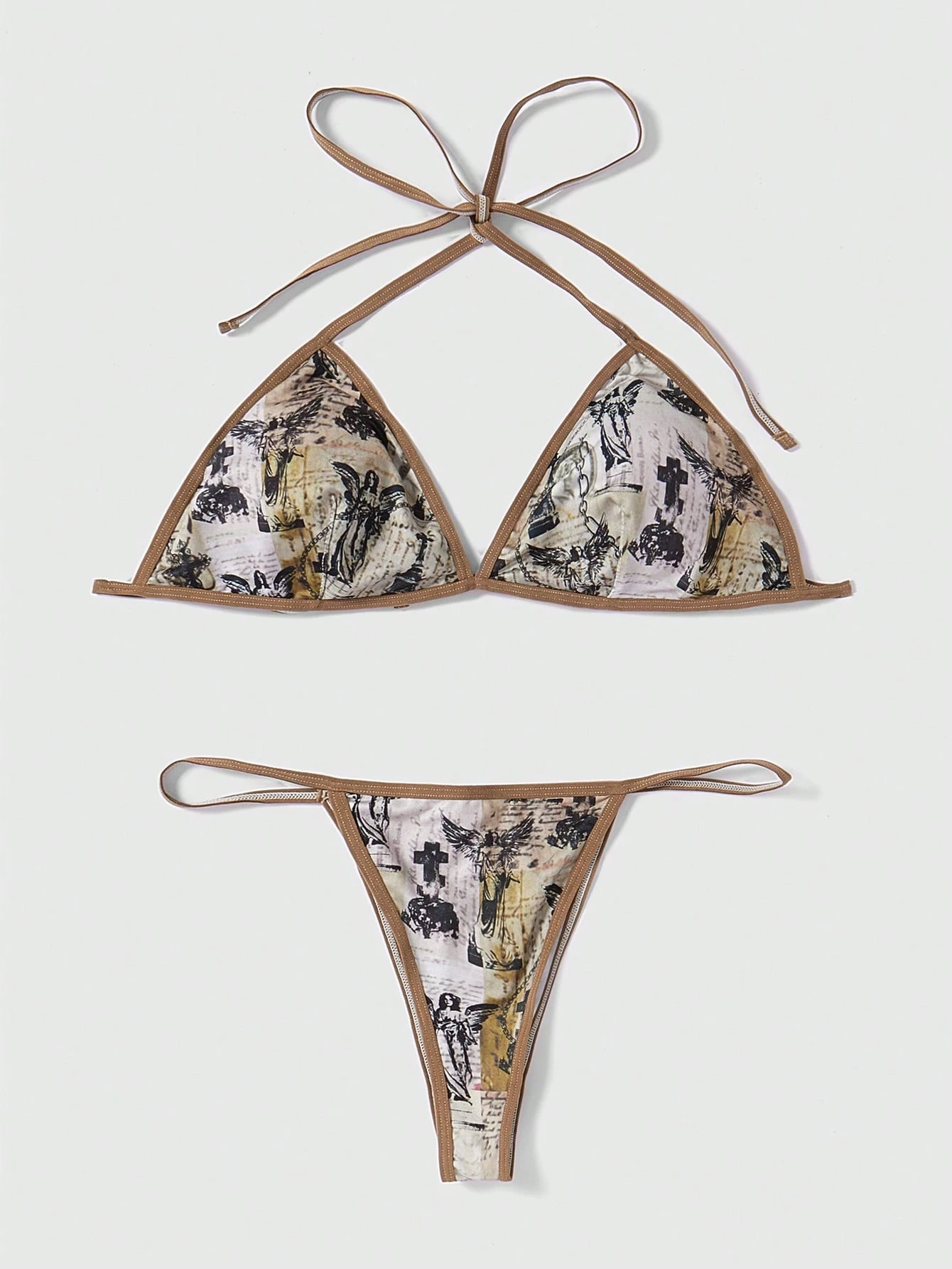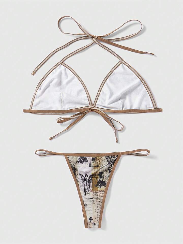 Grunge Punk Set de lencería con estampado de figura unido en contraste