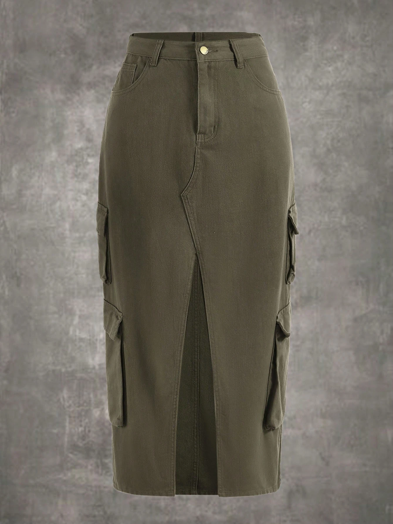 Grunge Punk Falda en mezclilla con bolsillo con solapa de muslo con abertura