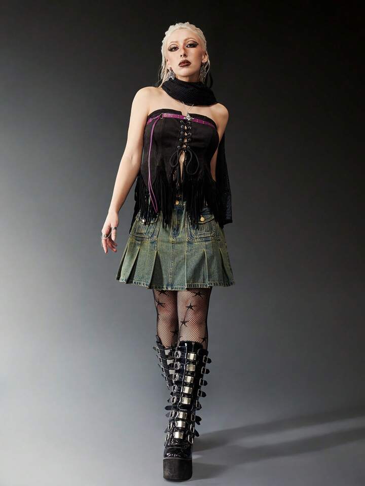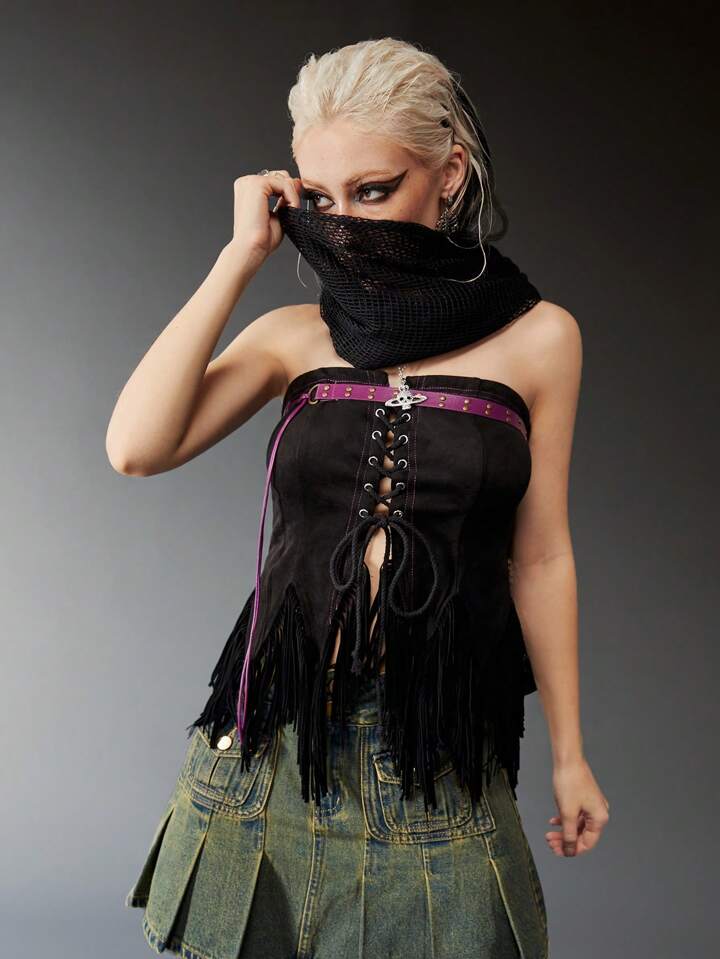 Grunge Punk Top bandeau bajo con fleco con cordón delantero