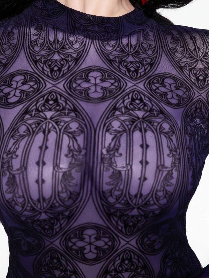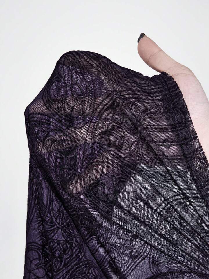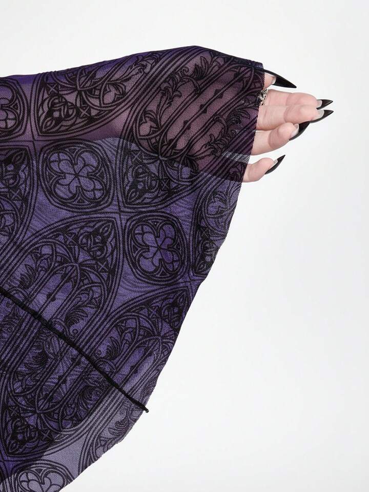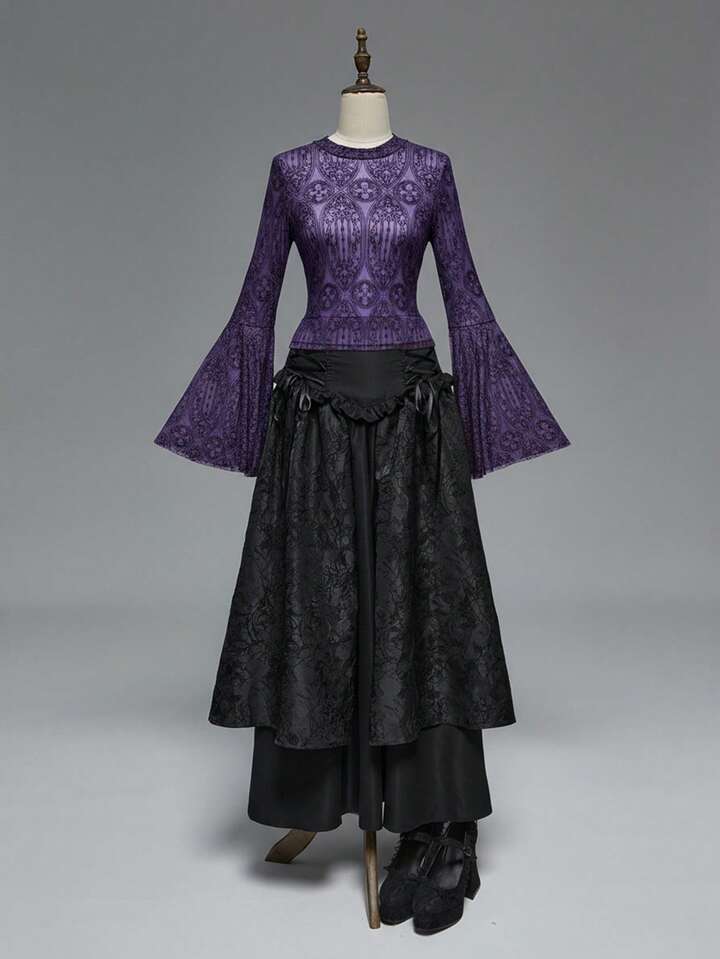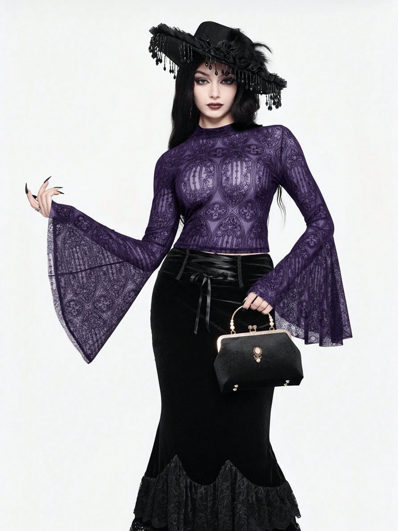 Grunge Punk Blusa transparente con mangas acampanadas y estilo gótico oscuro, adecuada para Halloween