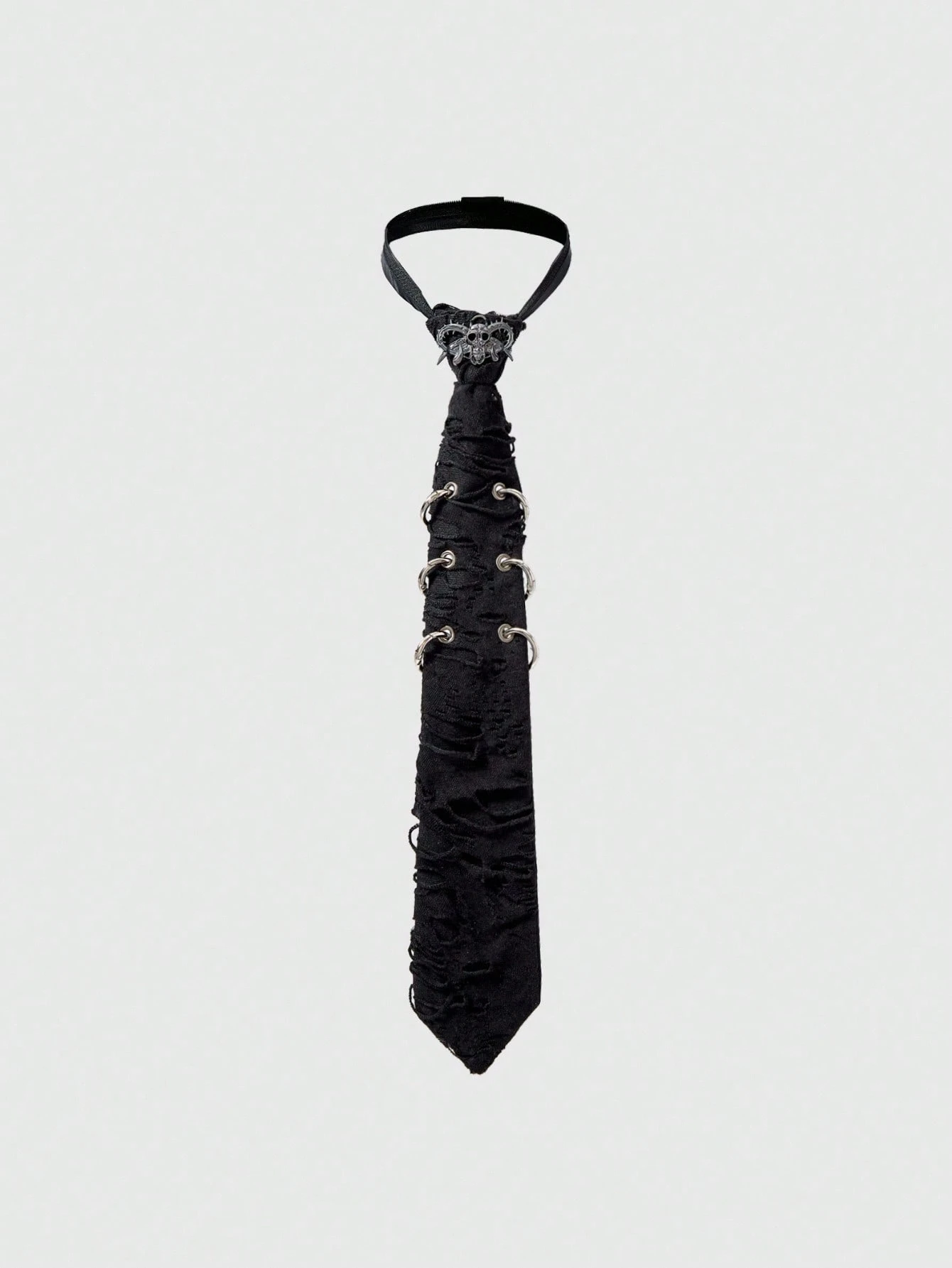 Grunge Punk Corbata estilo gótico steampunk con hebilla de calavera de metal, texturas asimétricas, accesorio de moda de nicho para hombres y mujeres, apta para fiestas, reuniones, eventos sociales y fotografías