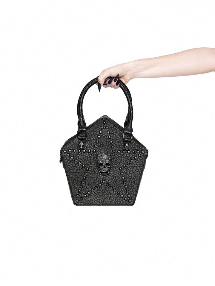 Grunge Punk Bolso de mano con estampado de estrella y calavera estilo gótico, bolso cruzado casual vintage punk de la calle con decoración de remaches, Halloween