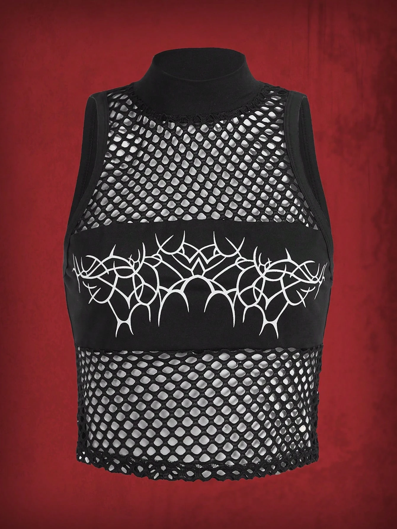 Grunge Punk Top tank con estampado de dibujo con abertura