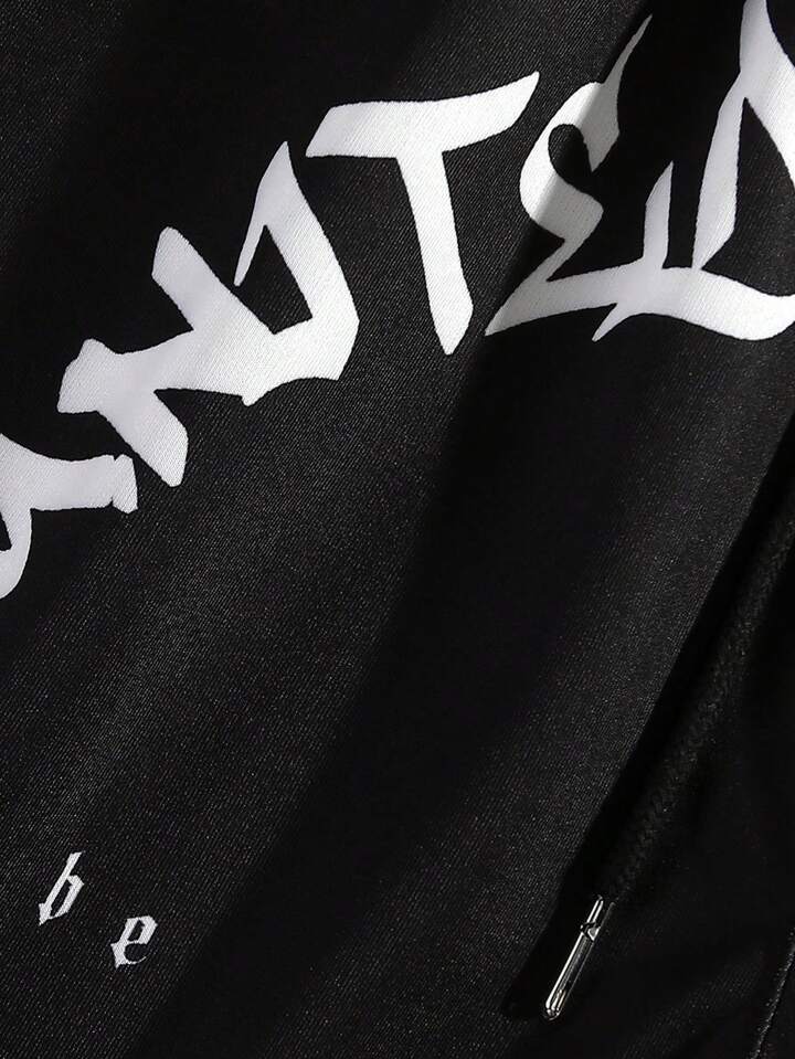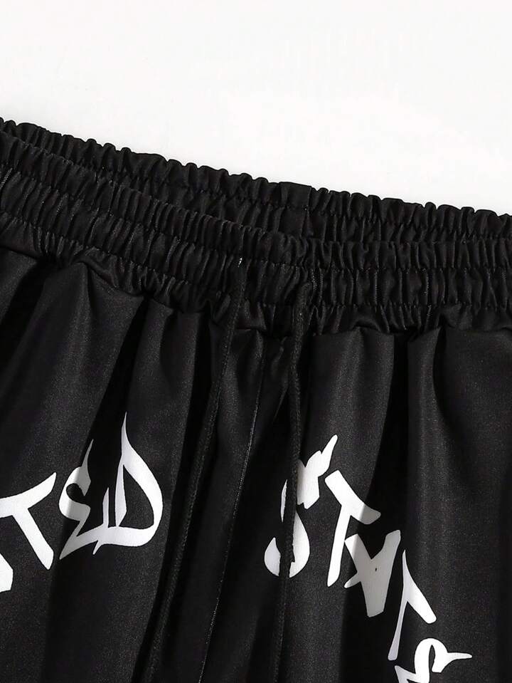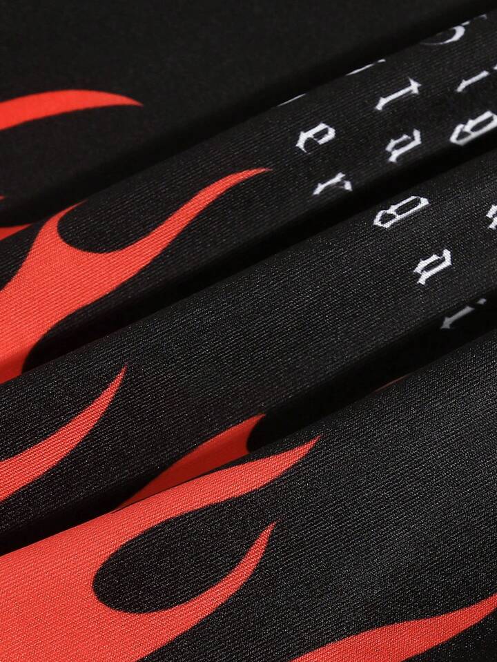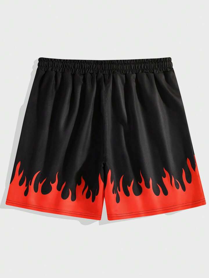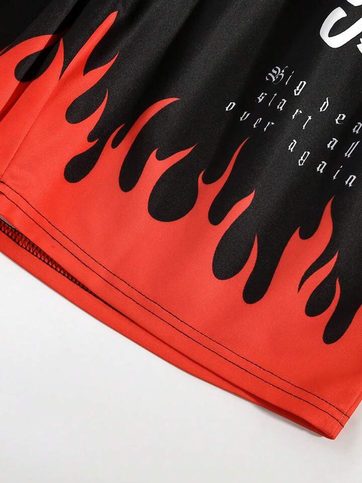Grunge Punk Hombres Shorts fuego con estampado de letra de cintura con cordón