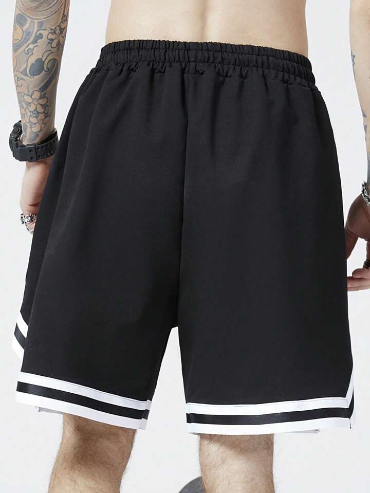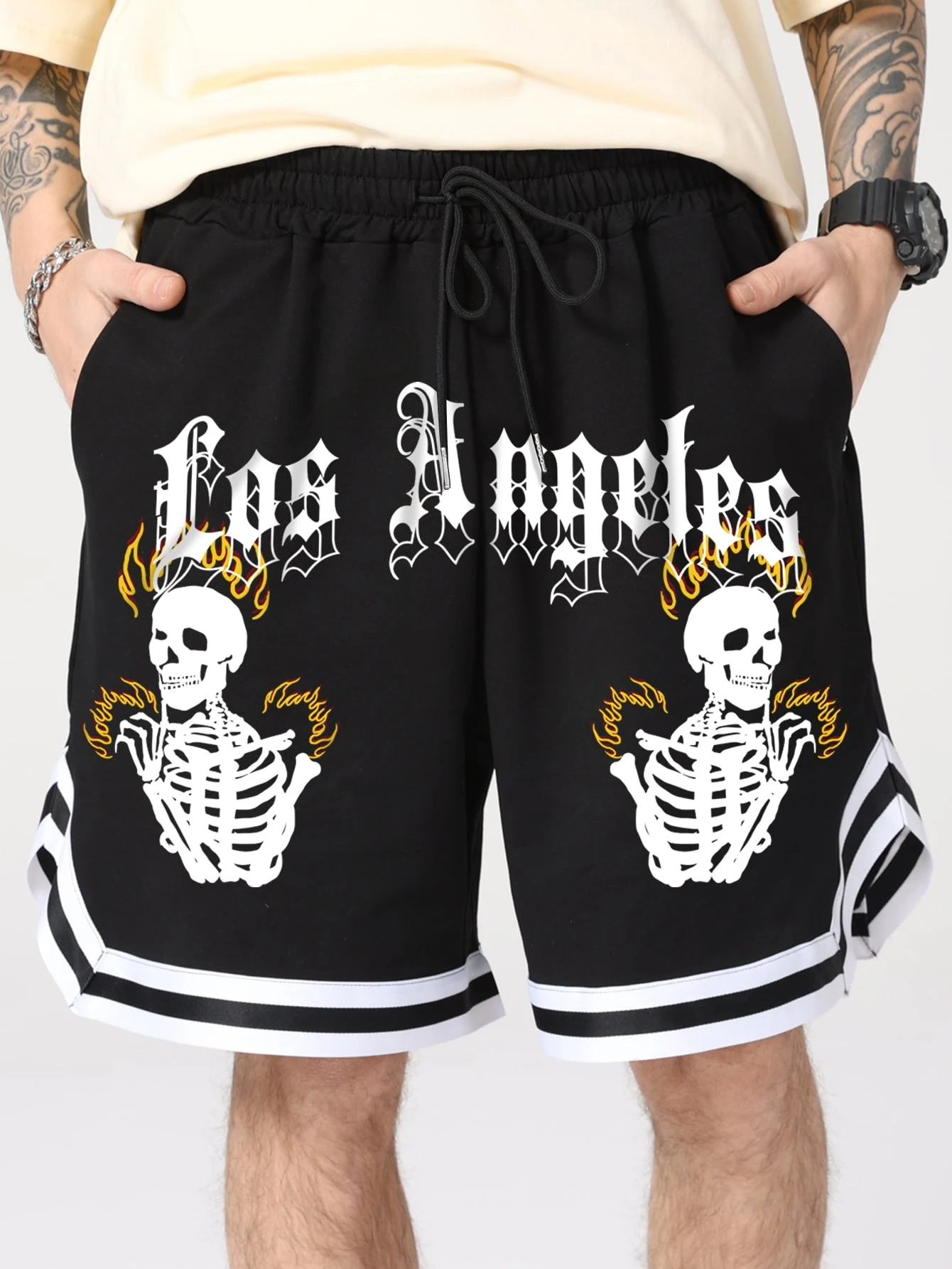 Grunge Punk Hombres Shorts con letra con estampado de cráneo ribete de rayas