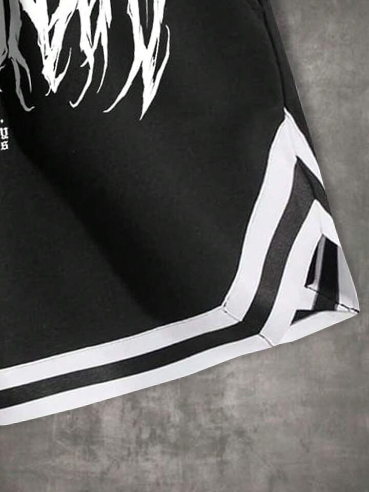 Grunge Punk Camiseta Gráfica De Calavera Con Letra Para Chicos & Pantalones Cortos Con Cintura Elástica Con Cordón Con Ribete A Rayas