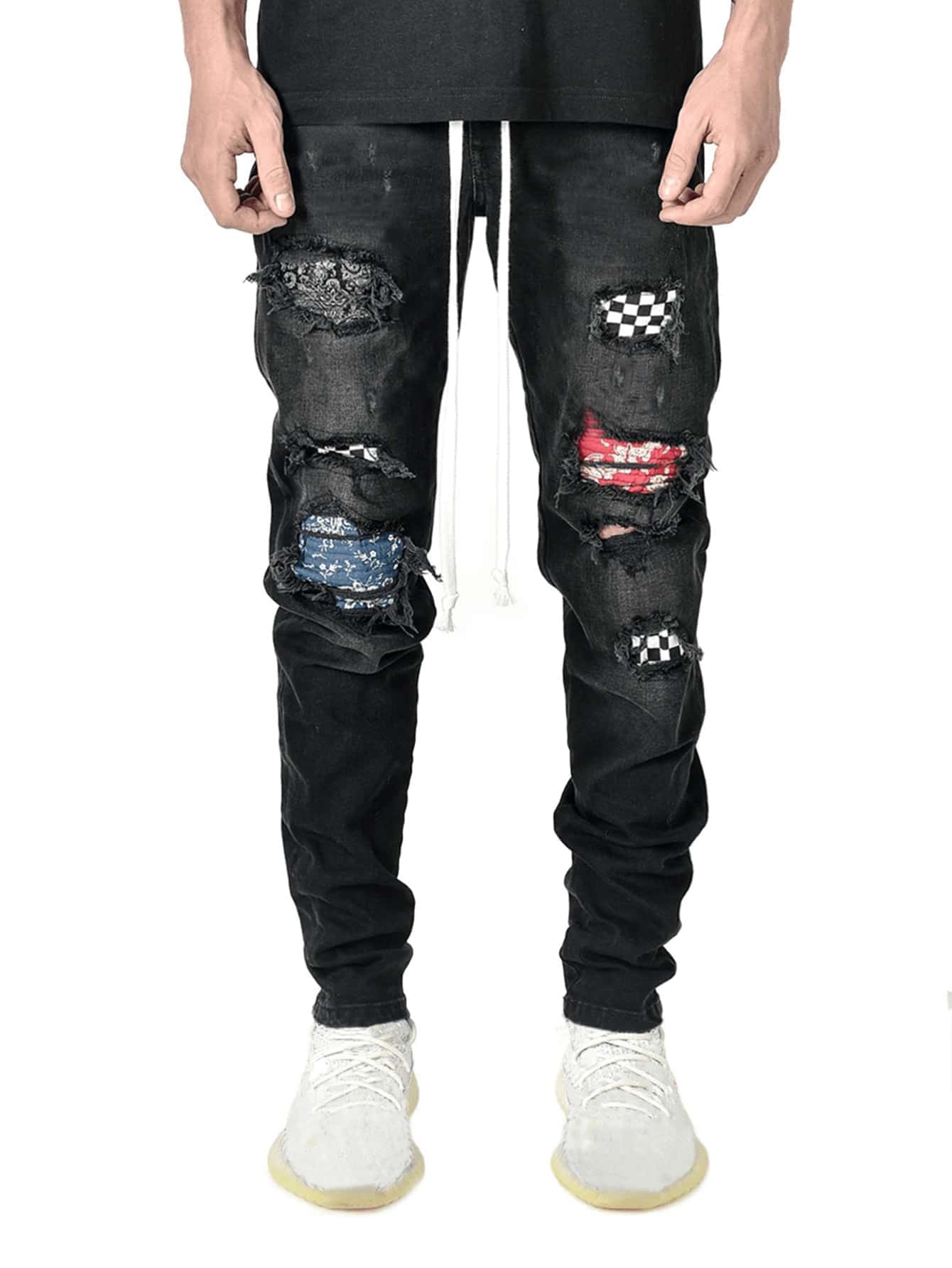 Grunge Punk Hombres Jeans desgarro de cuadros