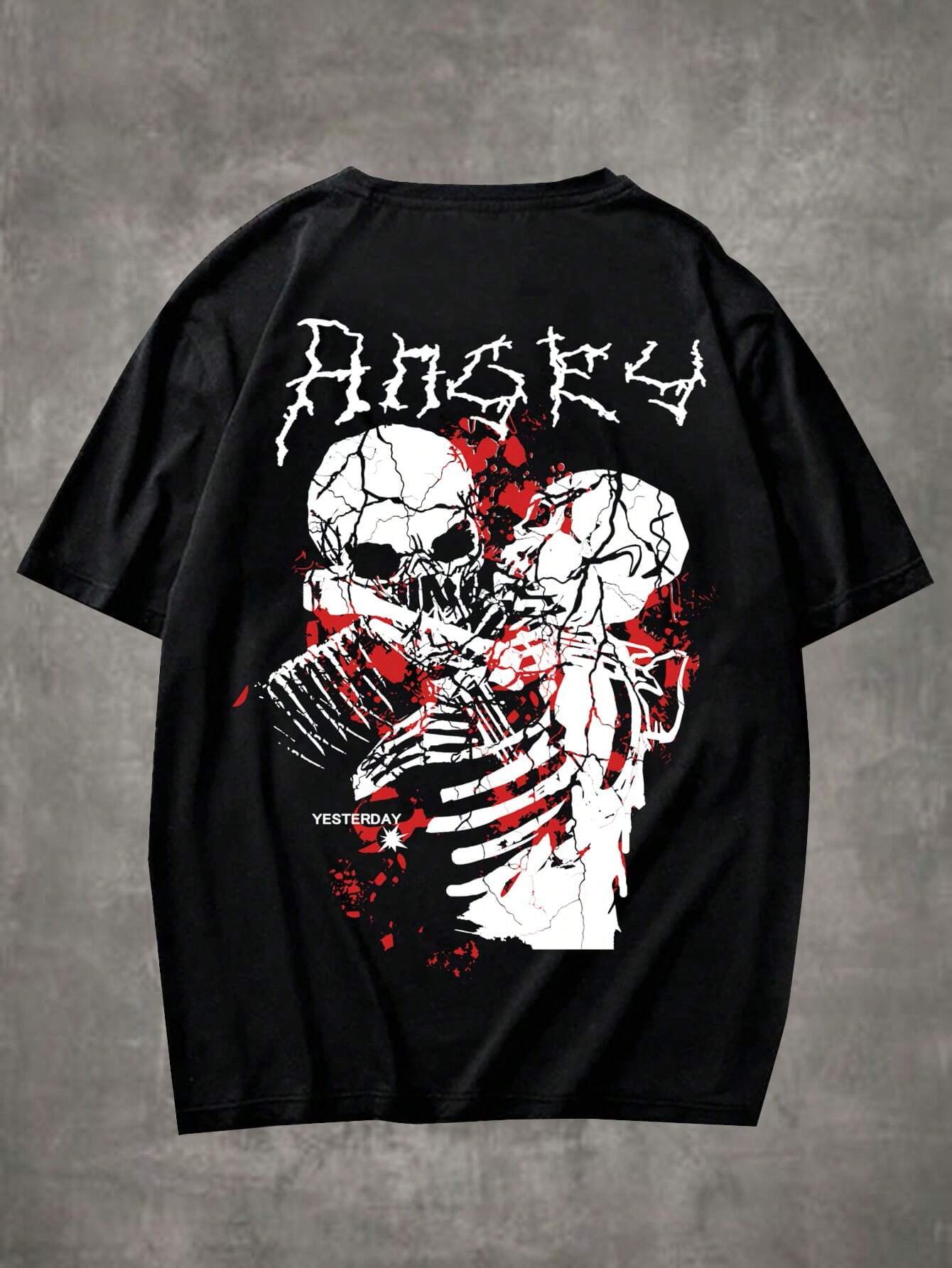 Grunge Punk Camiseta De Esqueleto Impresa Para Hombres