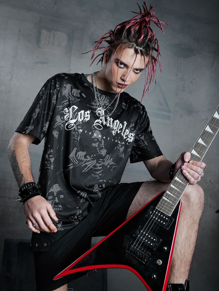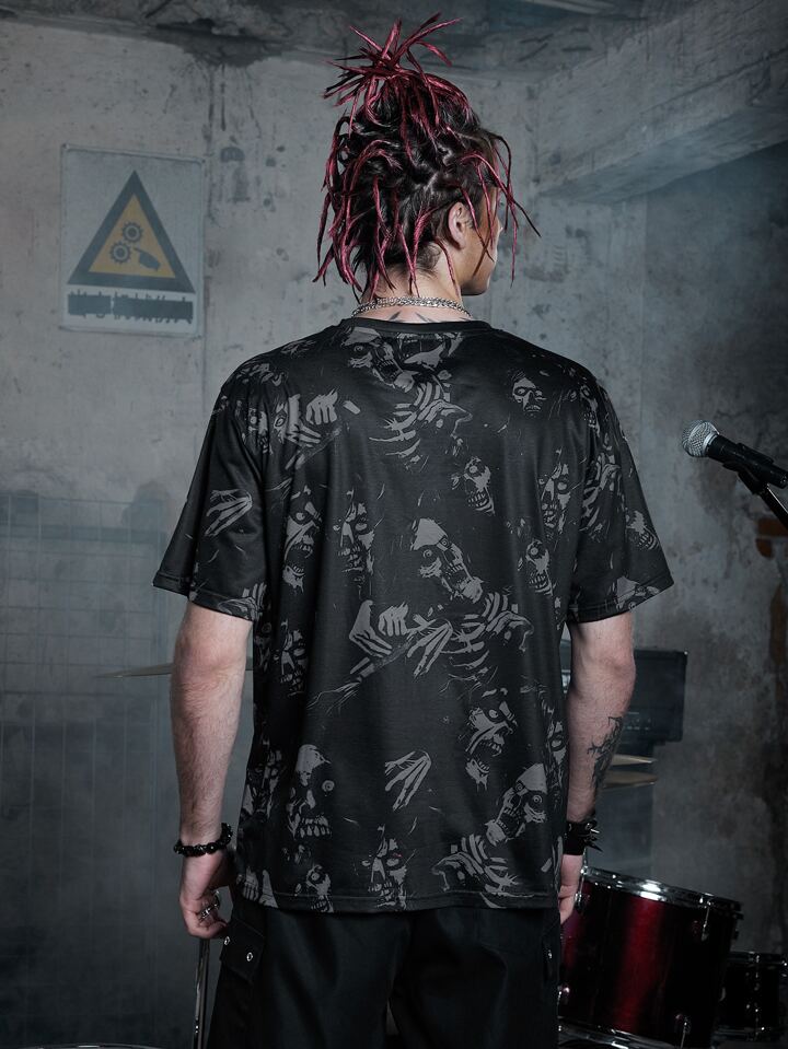 Grunge Punk Camiseta Gráfica De Letra Con Impresión De Calavera Para Hombre