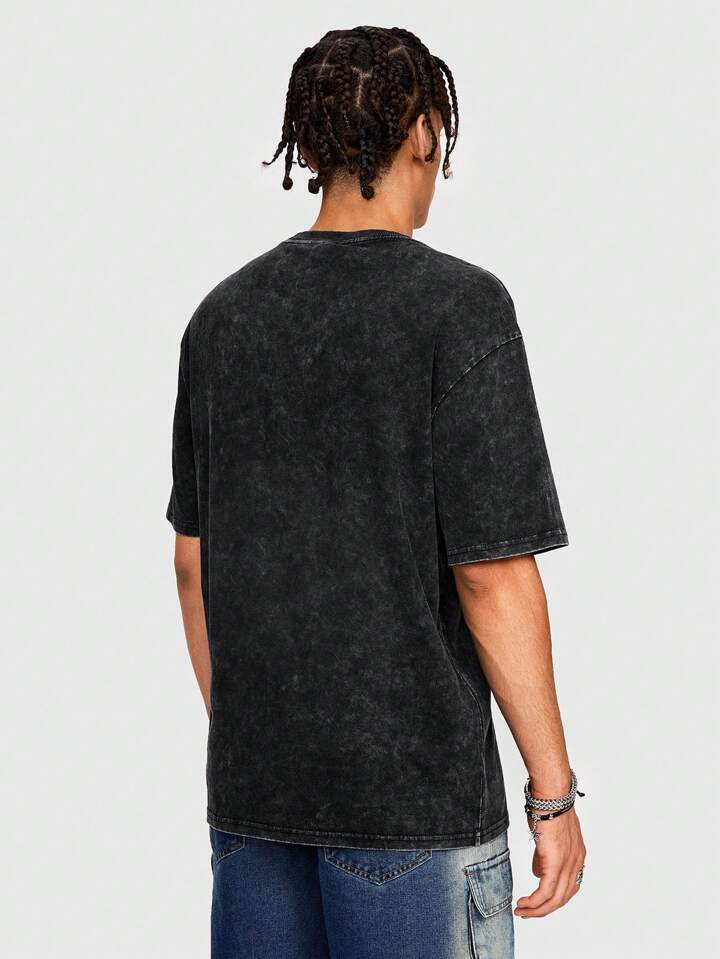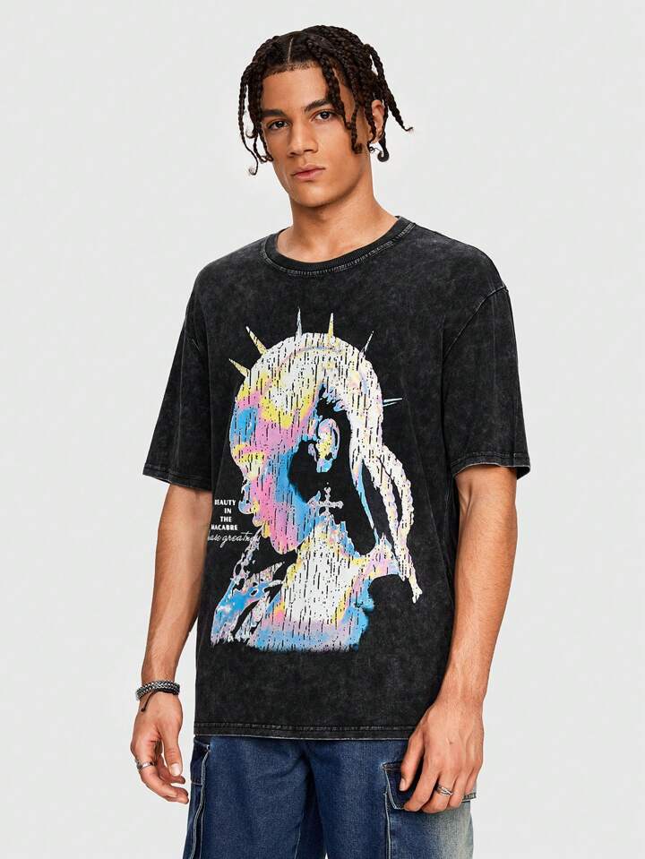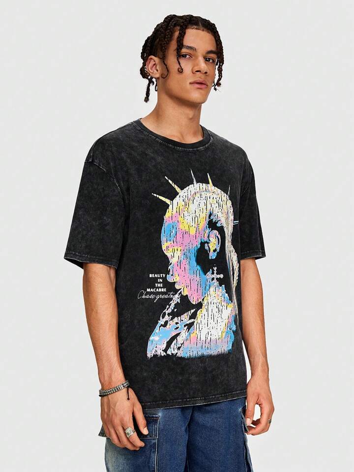 Grunge Punk Camiseta de manga corta con gráfico desgastado de estilo punk hip hop para hombres