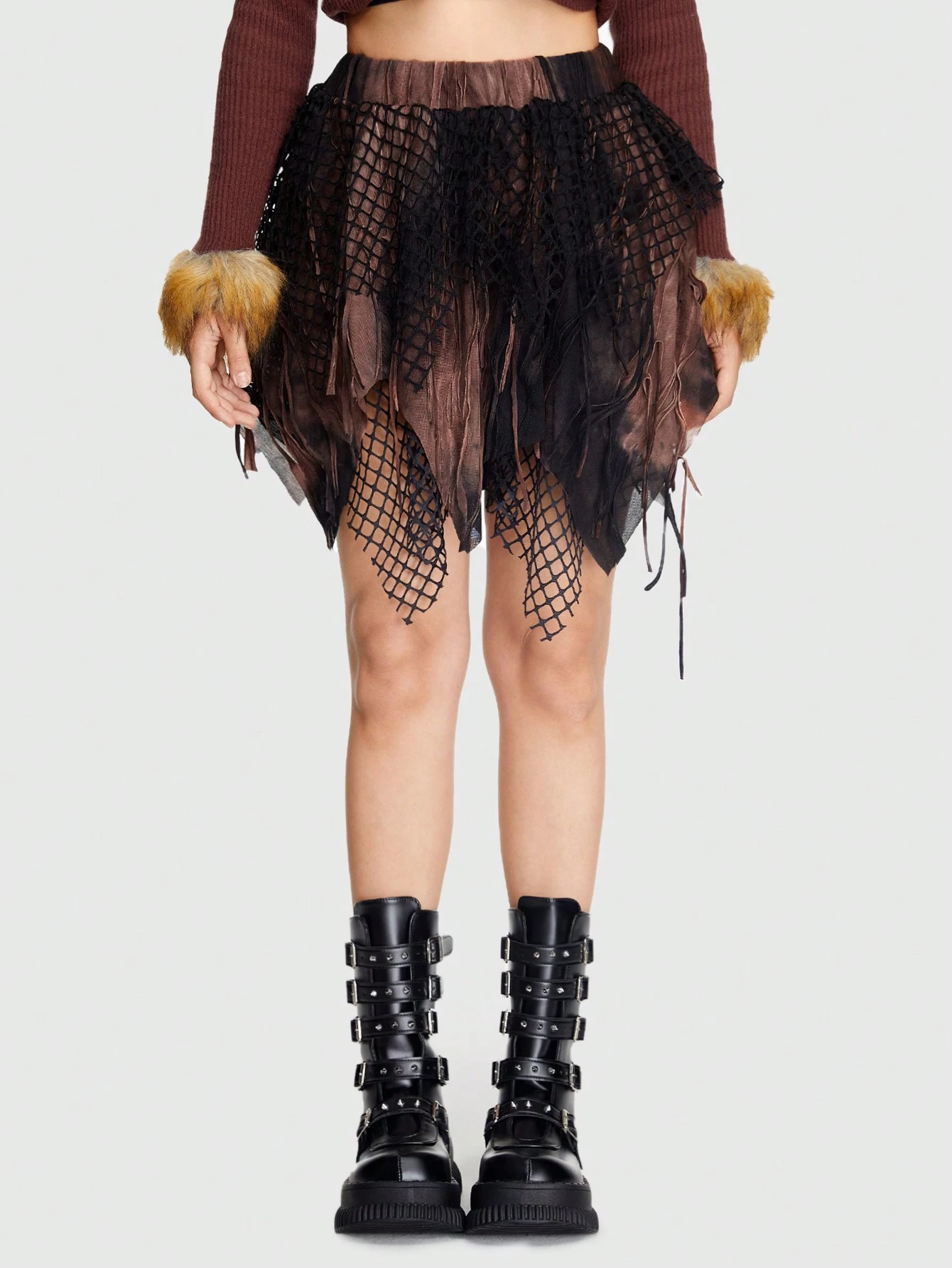 Grunge Punk Falda con abertura bajo asimétrico con malla