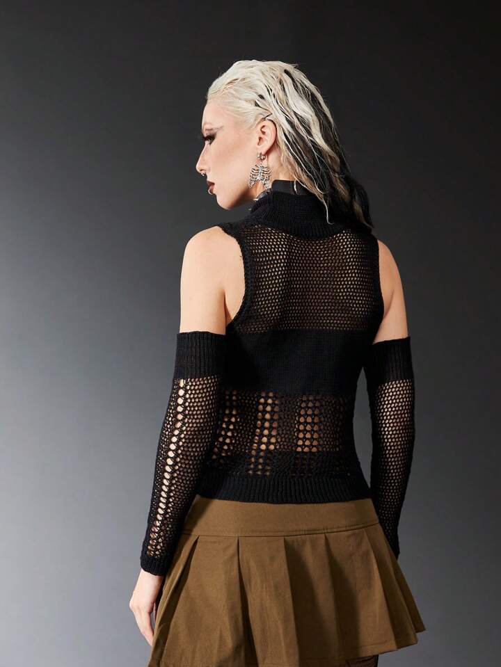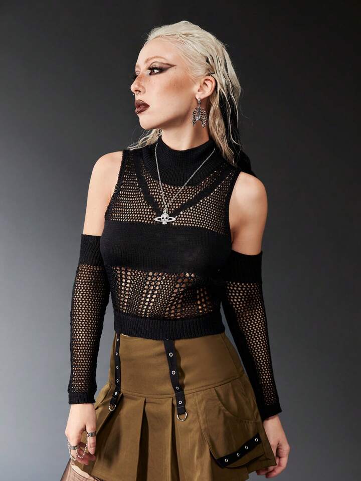 Grunge Punk Top de punto con abertura con mangas de brazo