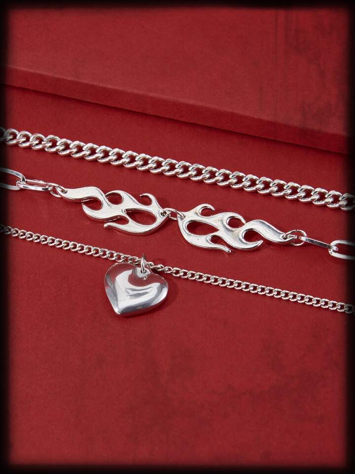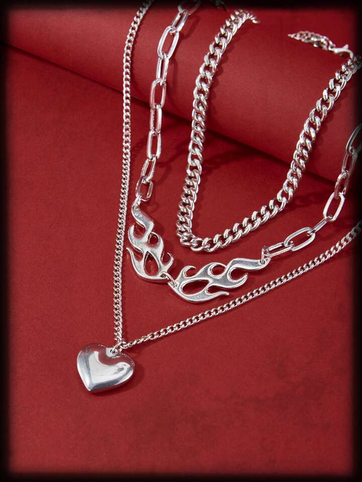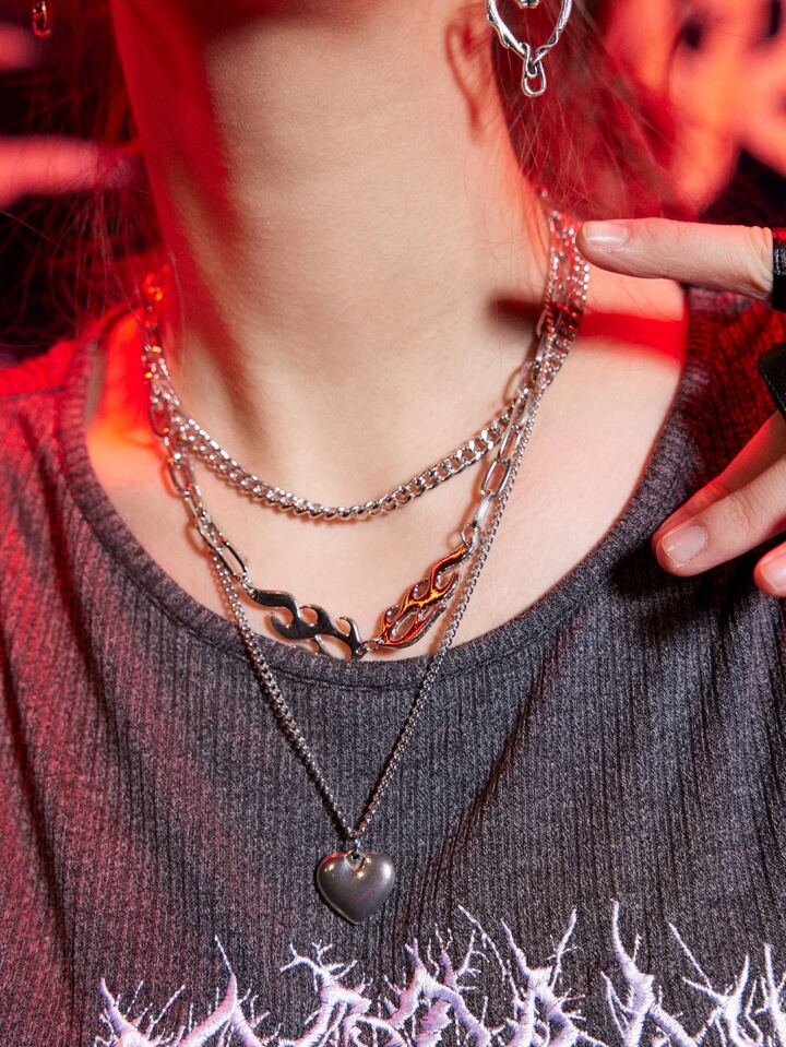 Grunge Punk Collar a capas con corazón & fuego con diseño