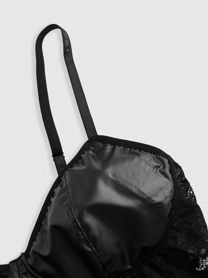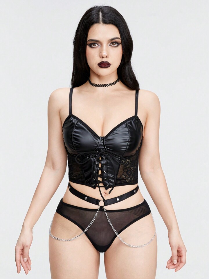 Grunge Punk Corsé De Cintura Baja En Estilo Punk Oscuro Para Mujeres Con Combinación De Encaje Y Pu, Con Ballenas De Acero Y Correas Ajustables