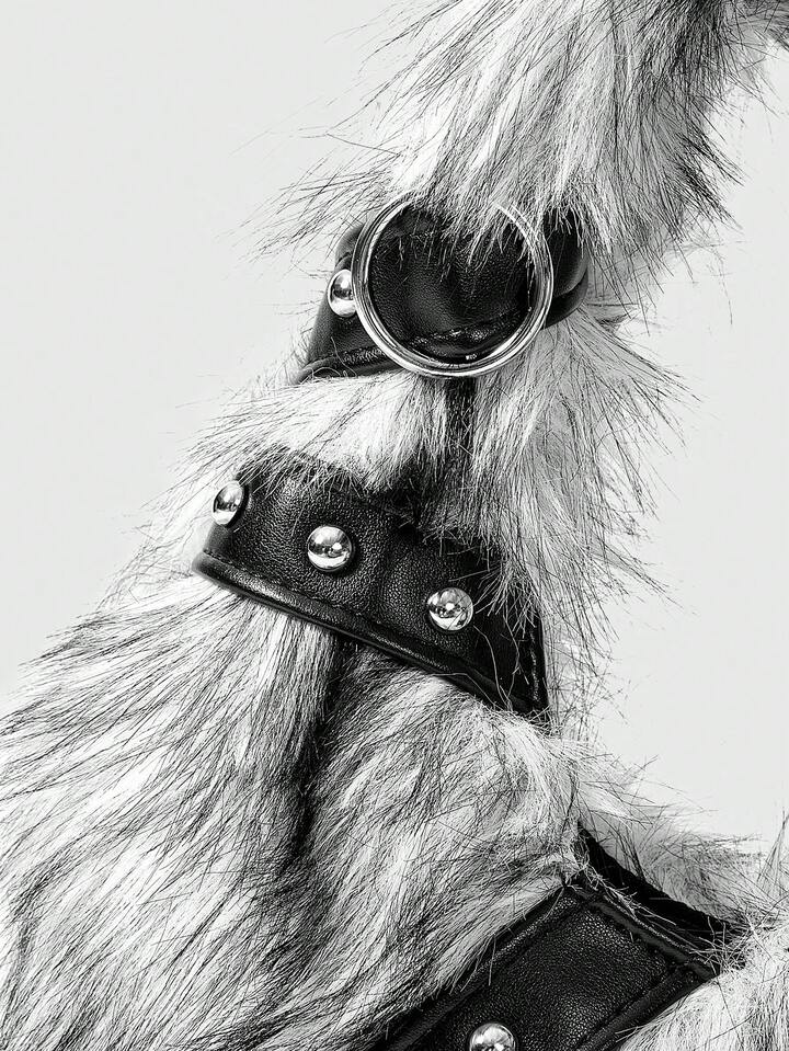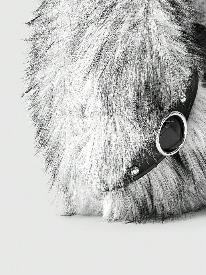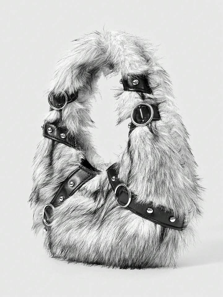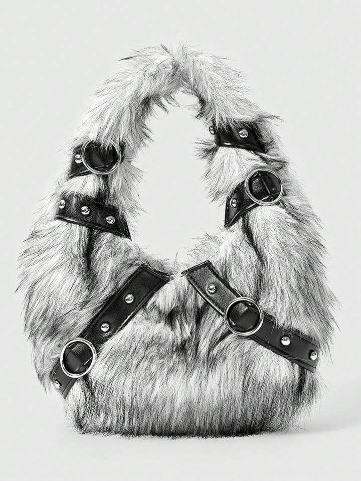 Grunge Punk Bolsos de mano para damas/mujeres, de peluche, bolso de peluche, bolsos de motociclista con remaches punk, regalos para mujeres, cadena de metal, de moda, personalizados, versátiles, para compras, calle, dulces y chicas geniales, chicas calientes, Y2K, diarios, otoño e invierno (patrón aleatorio)