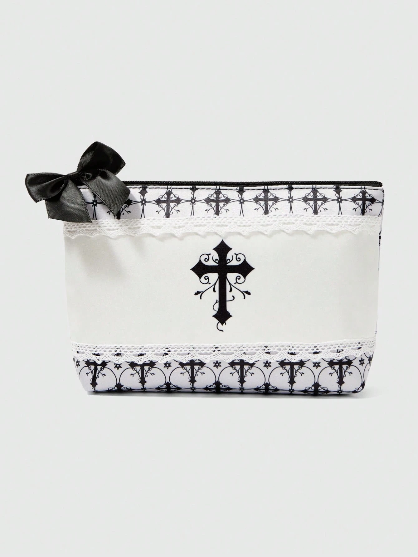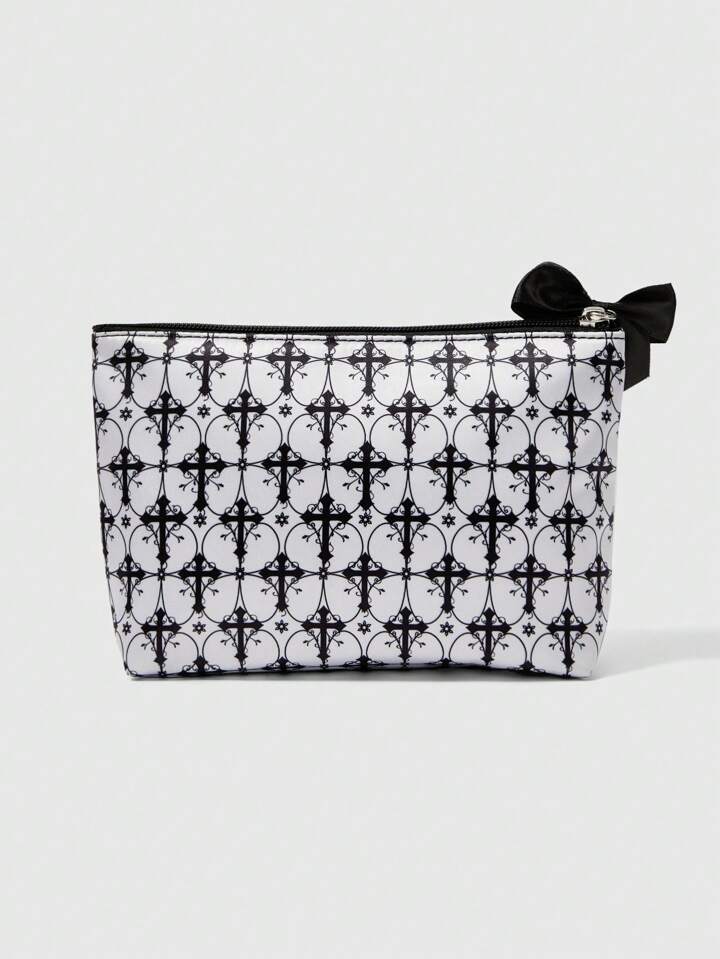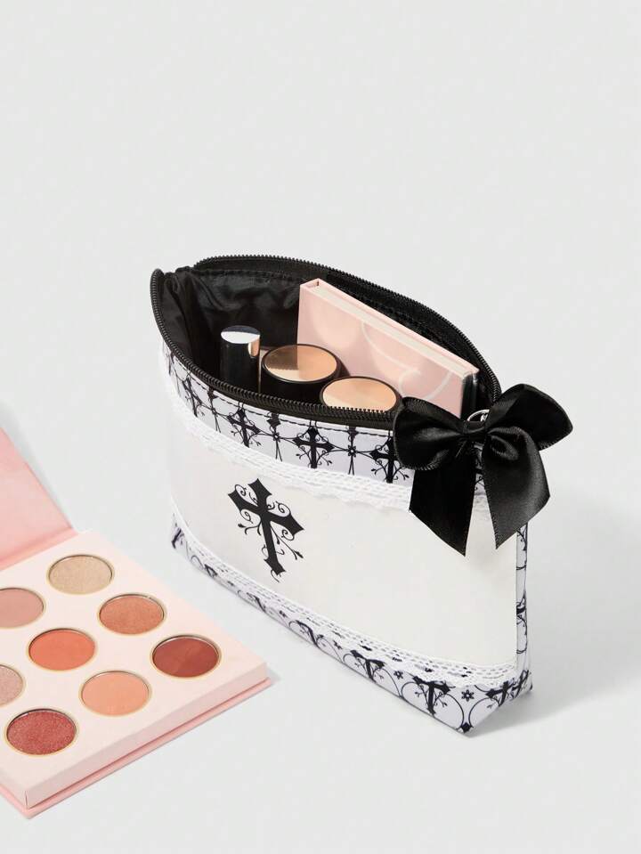 Grunge Punk Bolsa de cosméticos transparente de gran capacidad para mujer, con estampado floral y de cruz, en color gris
