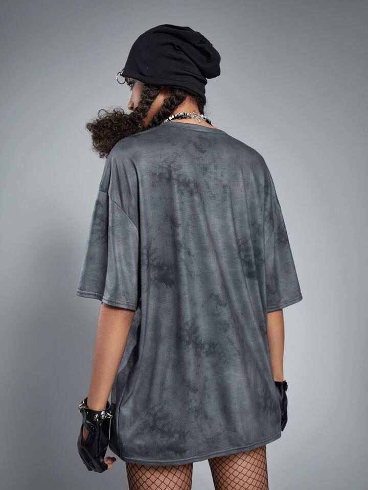 Grunge Punk Camiseta amplia con estampado de letra de tie dye