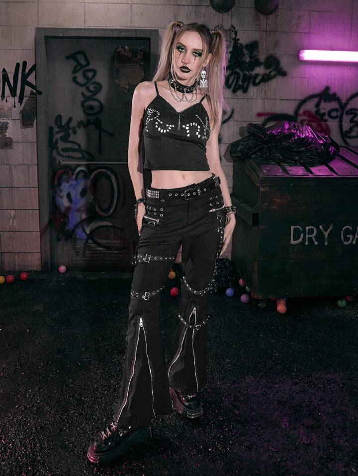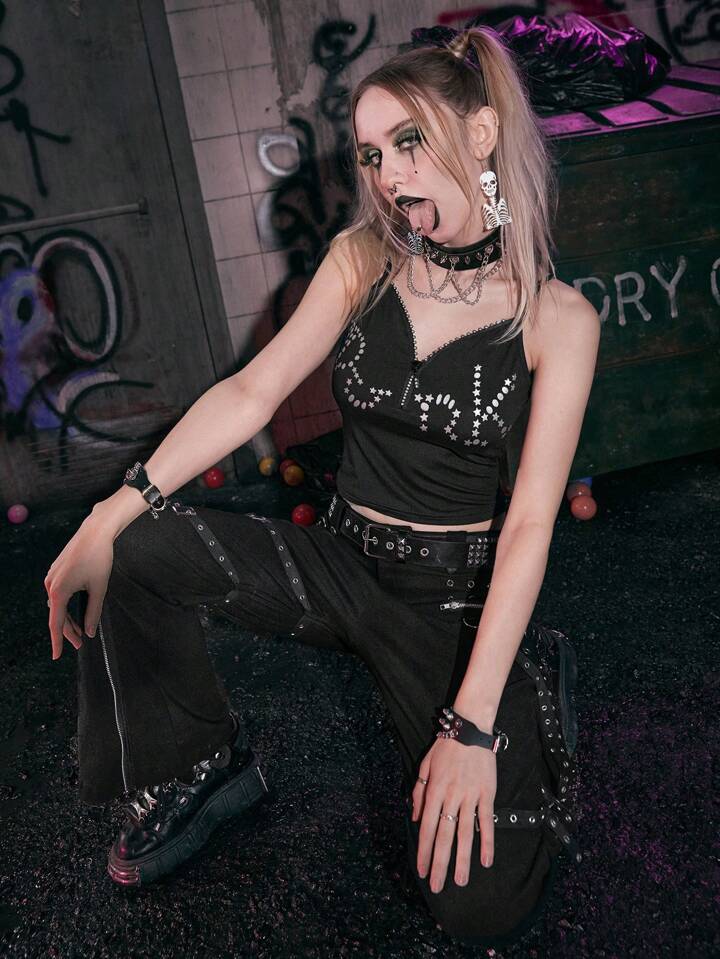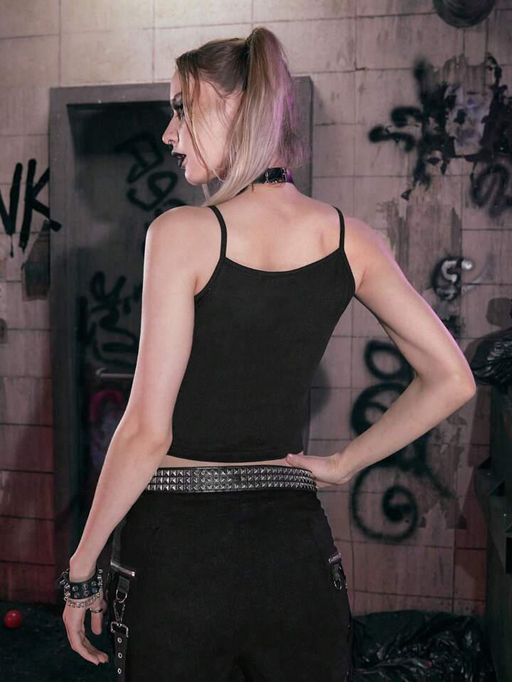 Grunge Punk Top de tirantes crop con letra con cremallera delantera