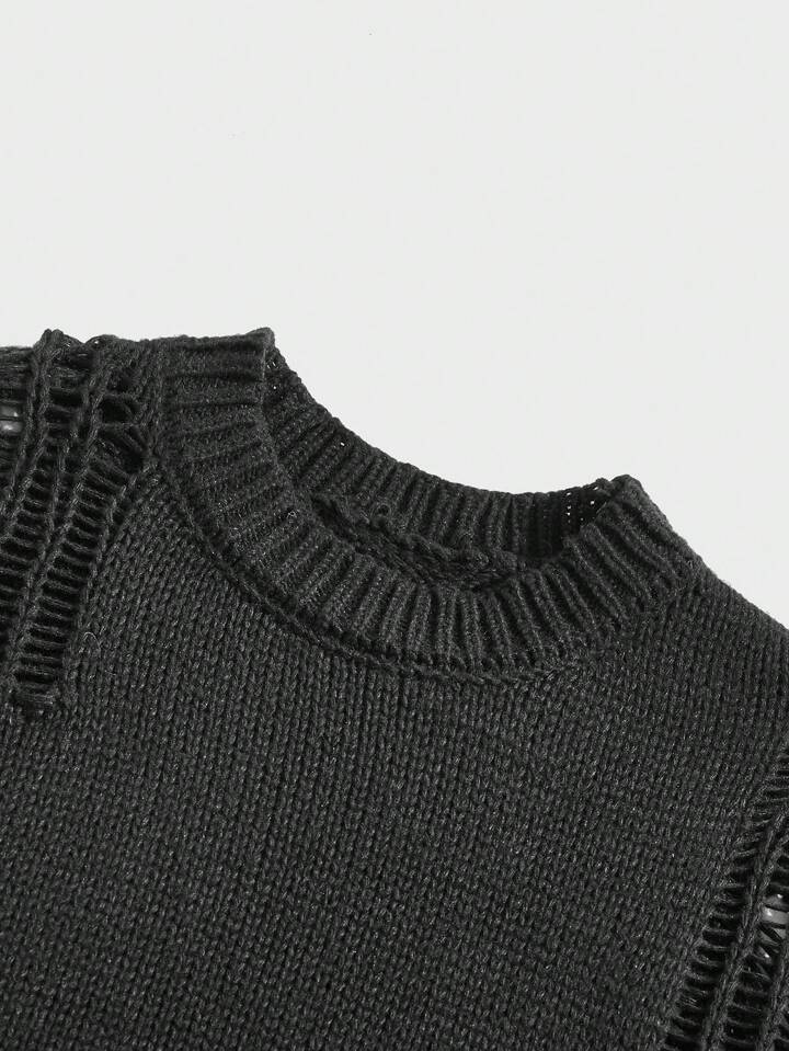 Grunge Punk Suéter de hombre con diseño rasgado, para otoño, estilo grunge