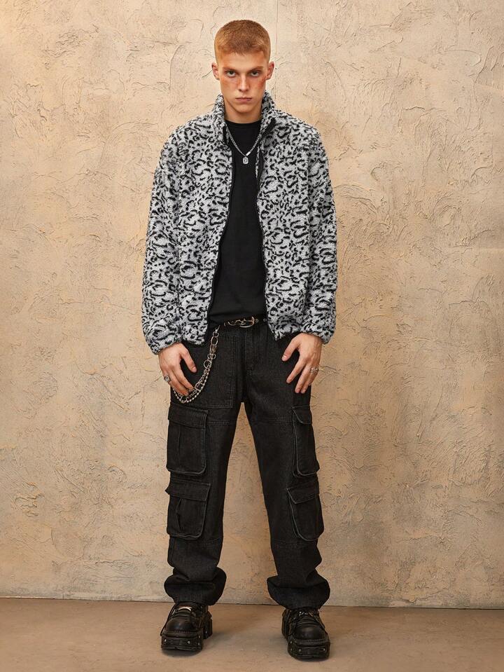 Grunge Punk Chaqueta de estampado de leopardo completo para hombres
