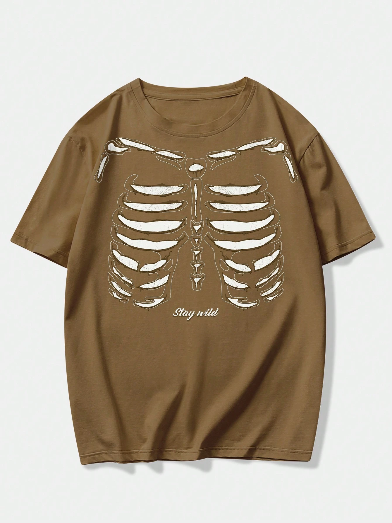 Grunge Punk Hombres Camiseta esqueleto & con estampado de letra