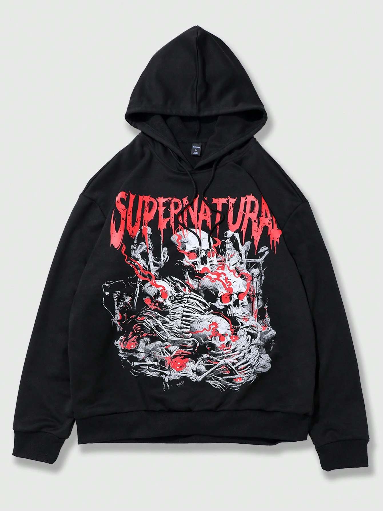 Grunge Punk Hombre Calavera Y Letra Gráfica Con Capucha De Cordón