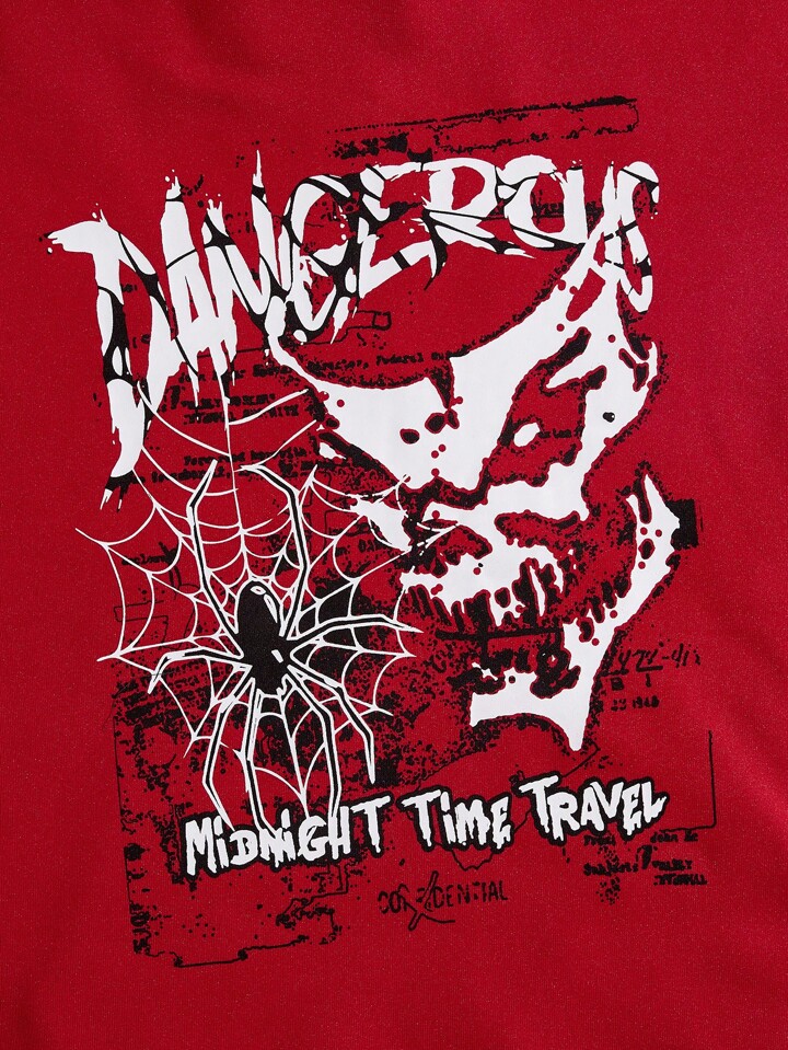 Grunge Punk Sudadera con capucha de forro polar con estampado de telaraña y letras para hombres, para Halloween, escuela