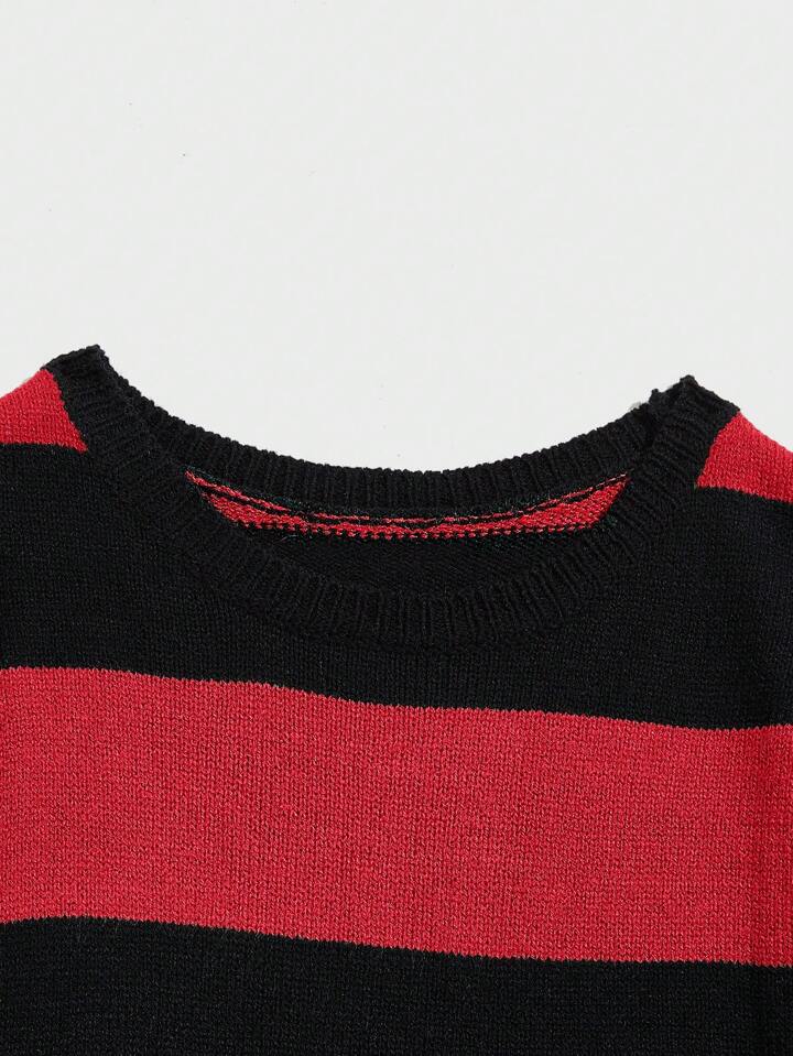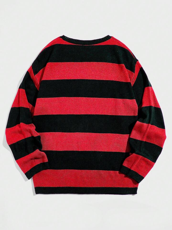 Grunge Punk Suéter De Hombre A Rayas Con Cuello Redondo