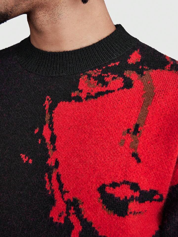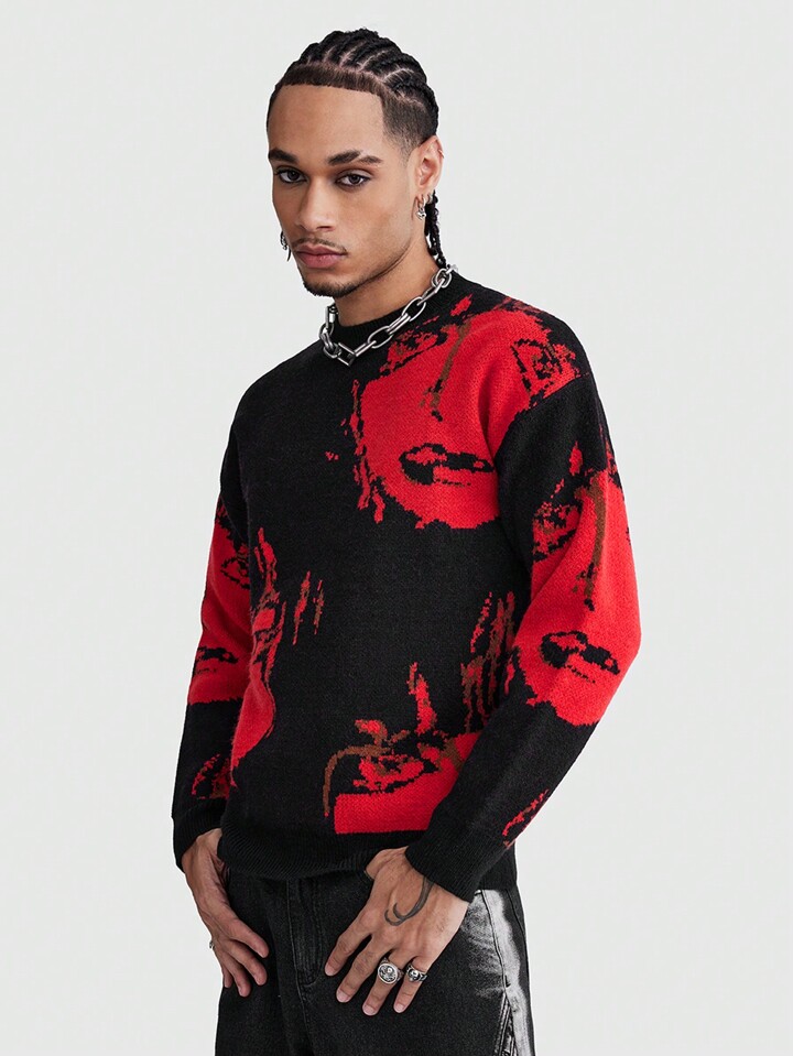 Grunge Punk Jersey informal de cuello redondo con estampado de figuras de color block para hombre, otoño e invierno, escuela
