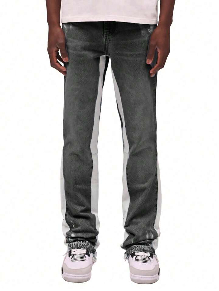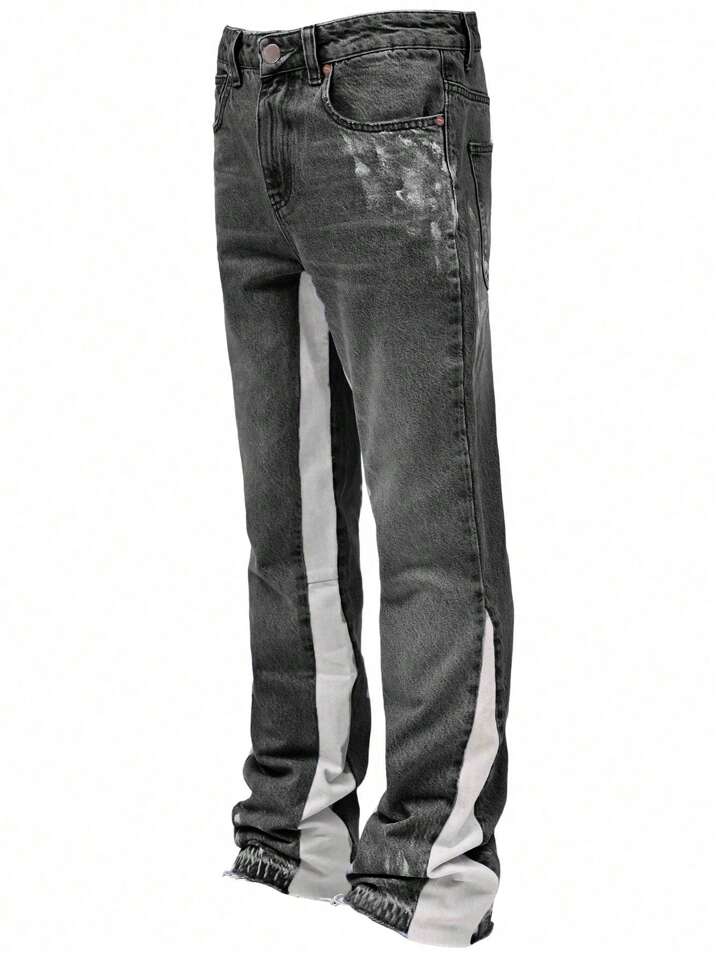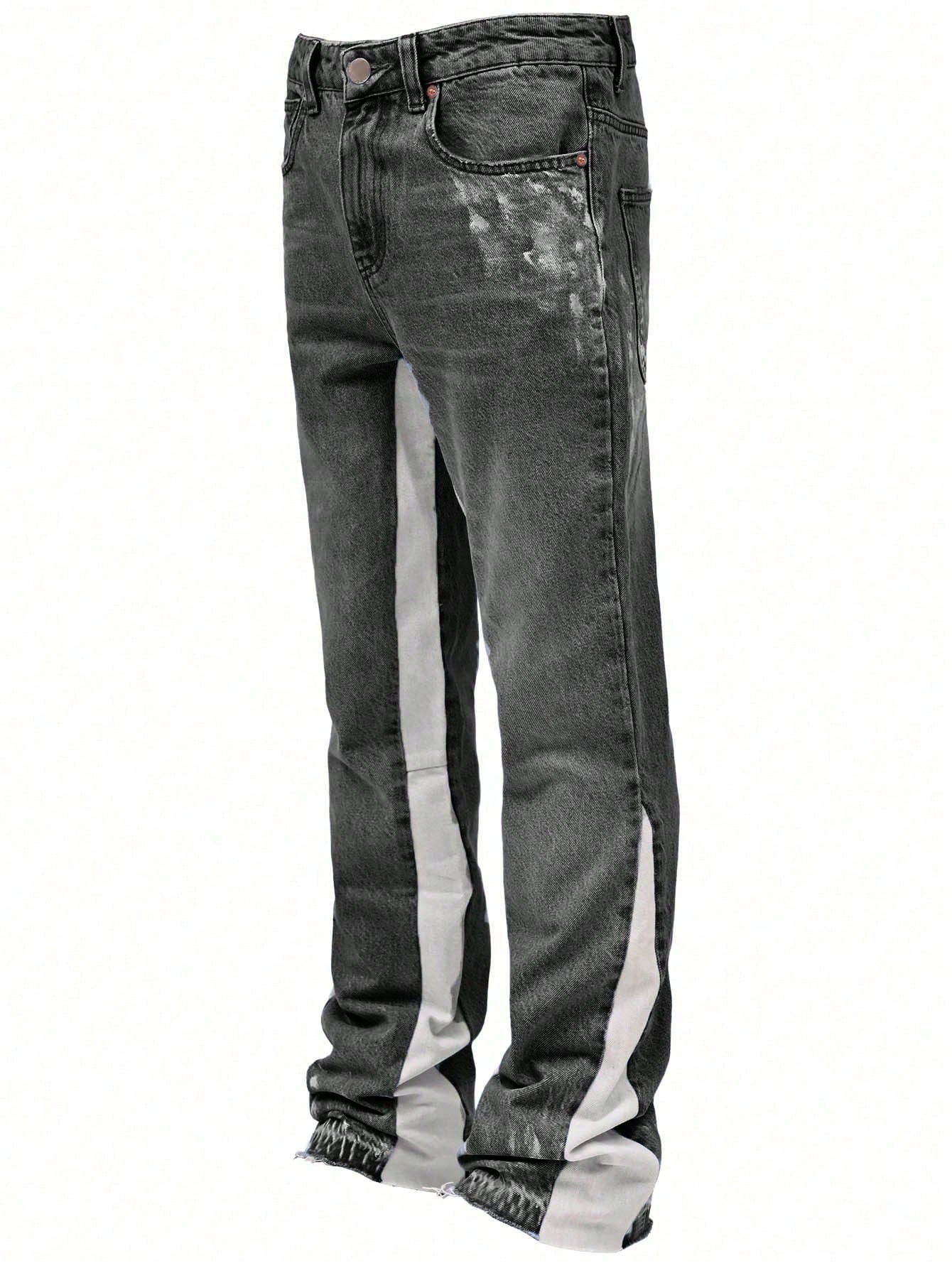 Grunge Punk Pantalones vaqueros casuales de hombre con piernas acampanadas, parches y desgastados con bolsillos