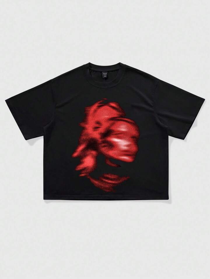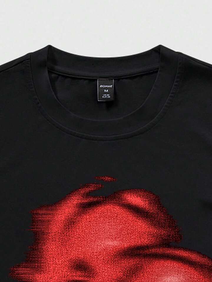 Grunge Punk Camiseta de manga corta de cuello redondo casual de verano para hombres con estampado de cara abstracta