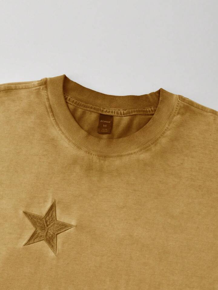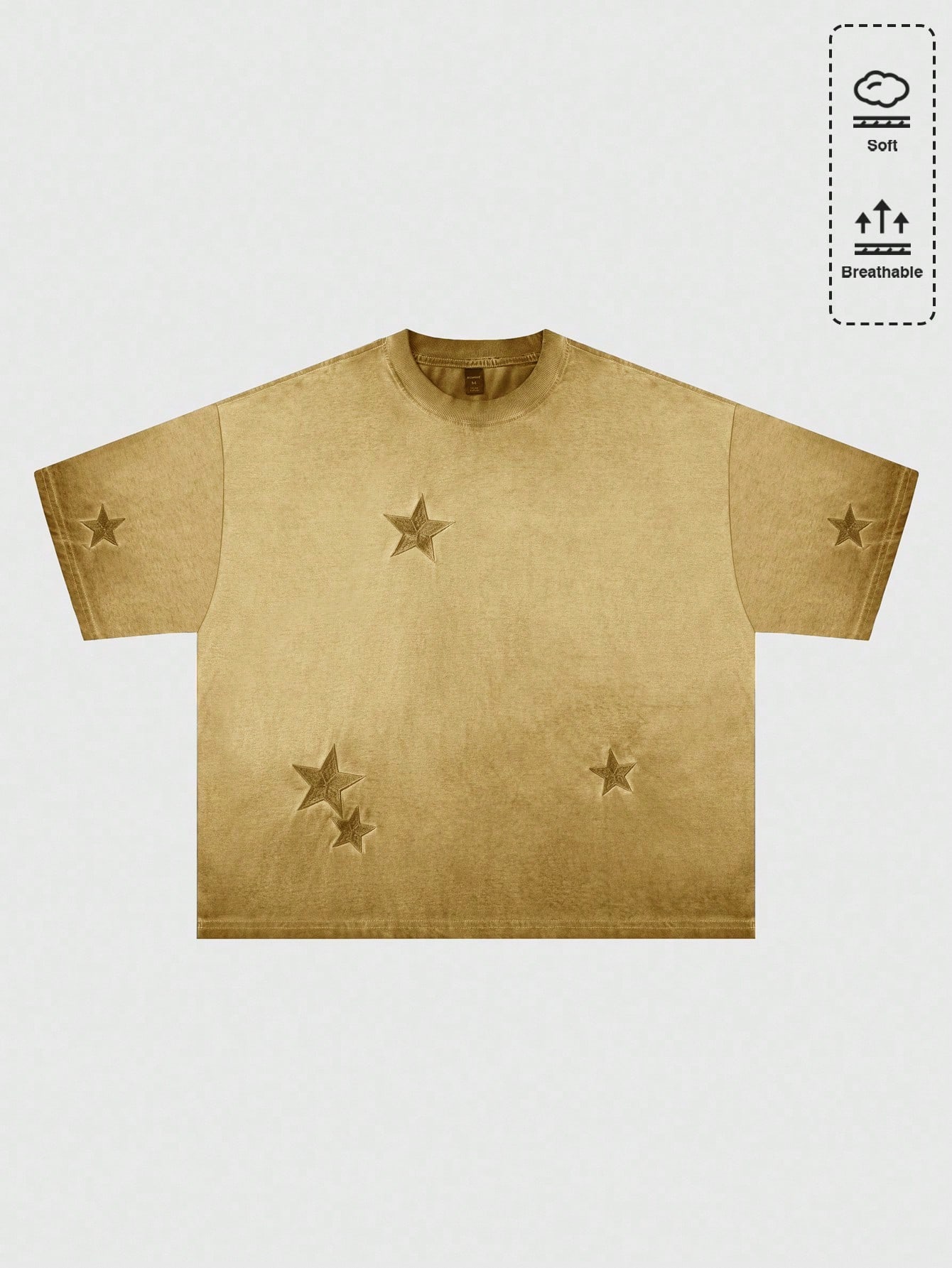 Grunge Punk Camiseta holgada de cuello redondo casual de hombre con bordado de estrella, para verano