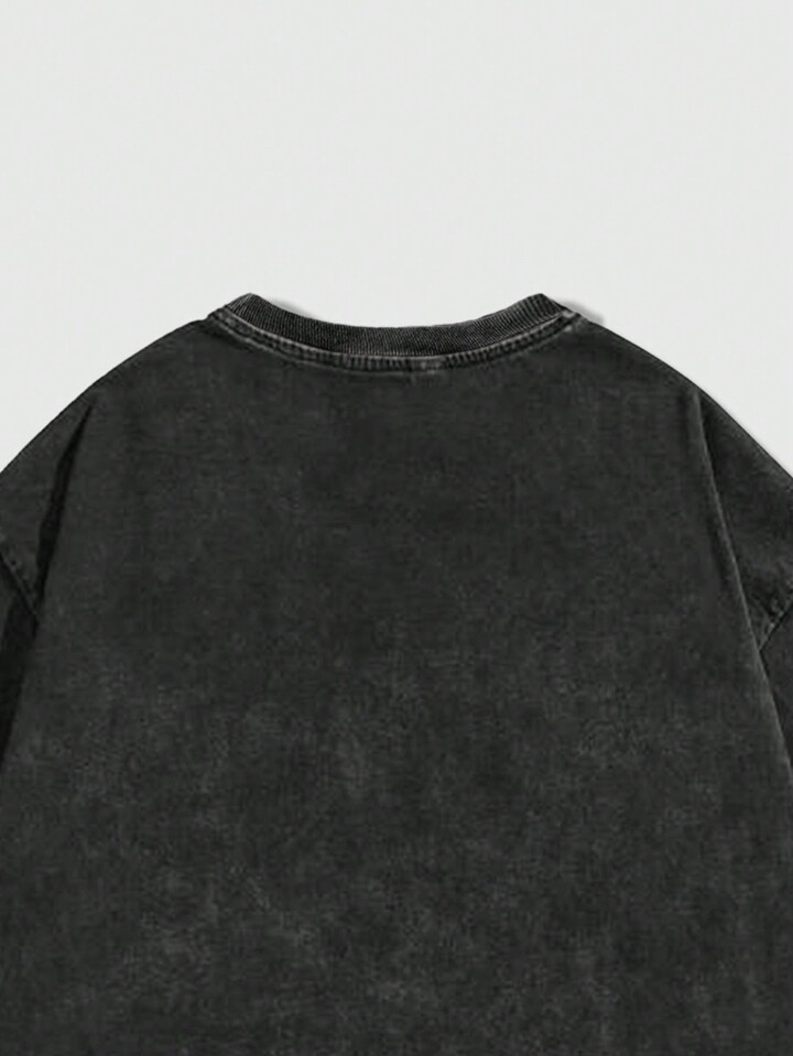 Grunge Punk Camiseta Informal Para Hombre Con Esqueleto E Impresión De Frases Con Hombros Caídos