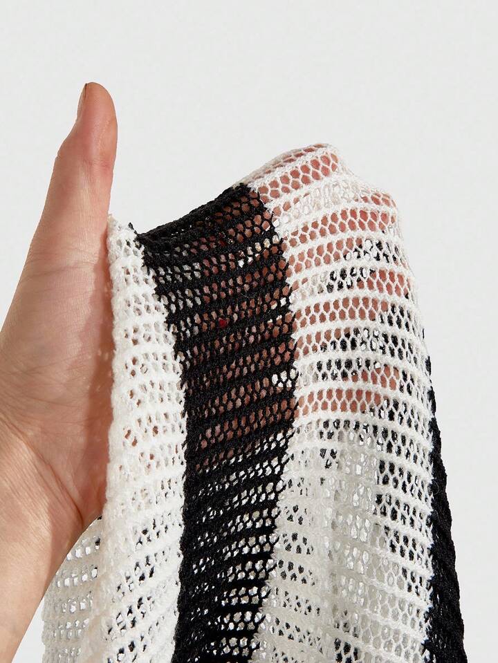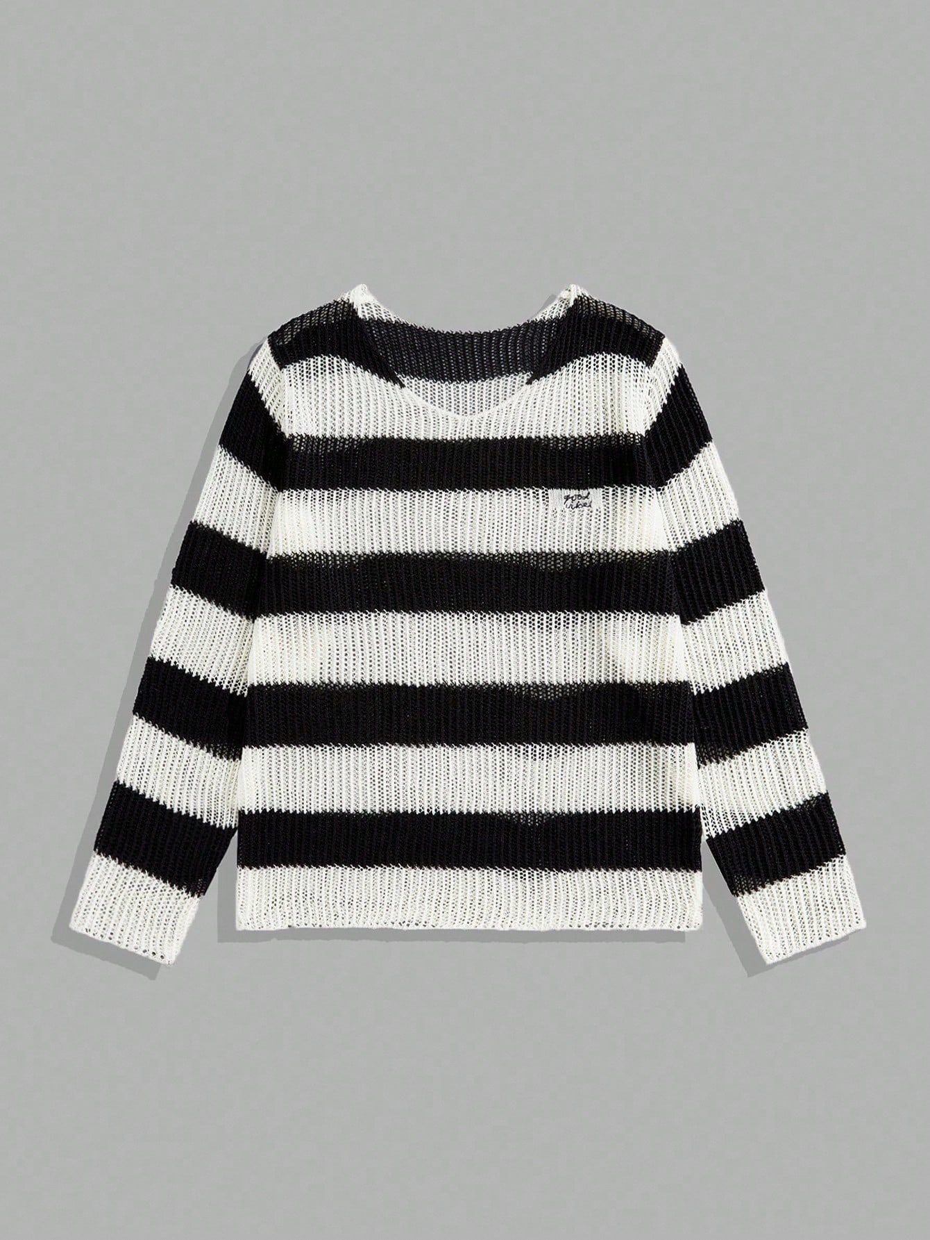 Grunge Punk Suéter de punto con diseño de rayas en contraste y calado para hombres