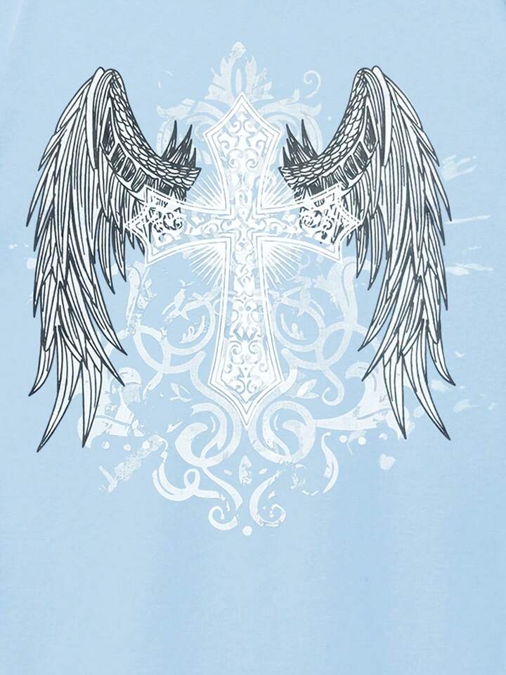 Grunge Punk Camiseta de hombre con estampado de alas y cruz para Halloween, escuela, estilo de los 2000