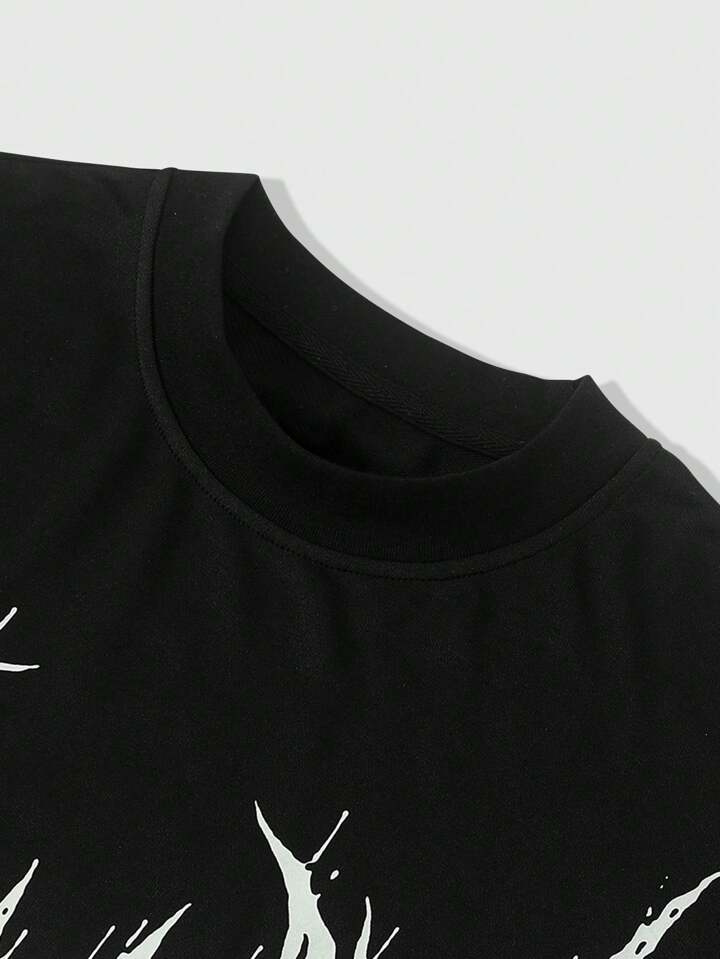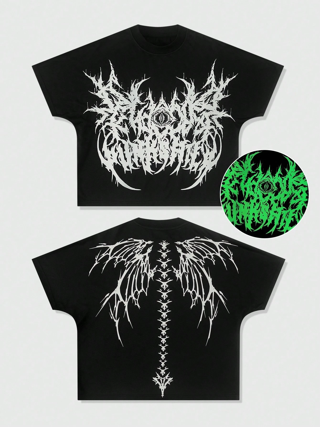 Grunge Punk Camiseta casual de manga corta con estampado de murciélago fluorescente para hombre, de verano