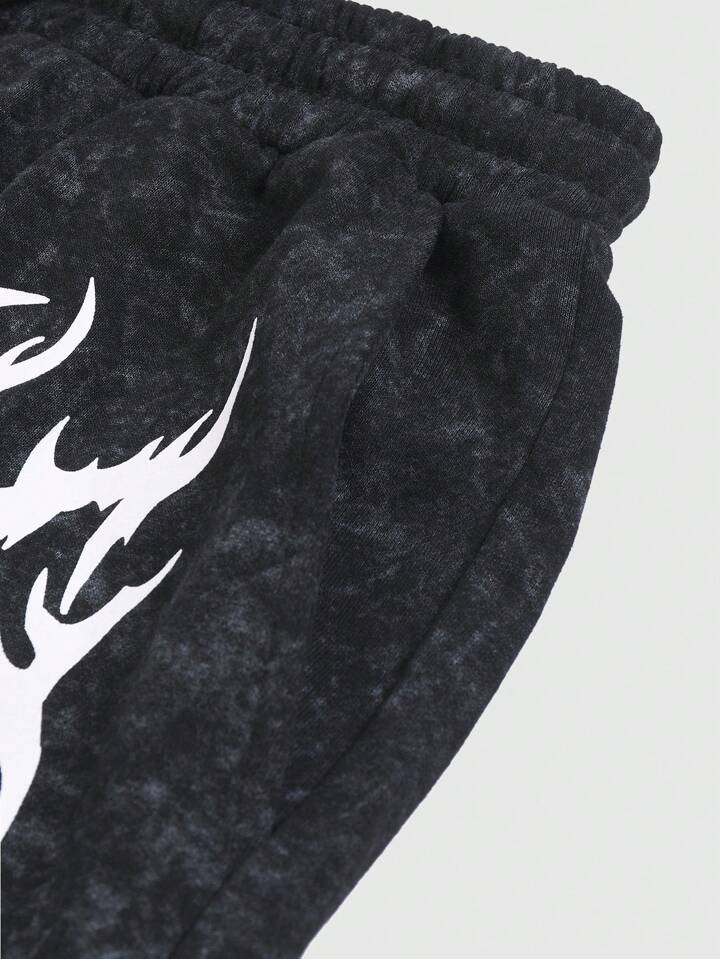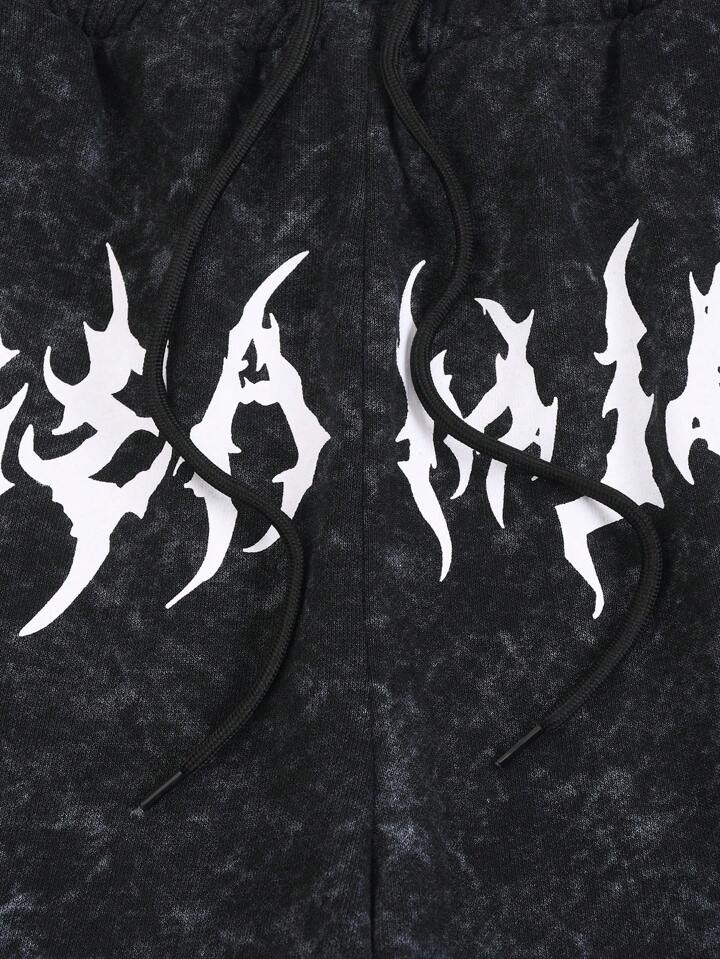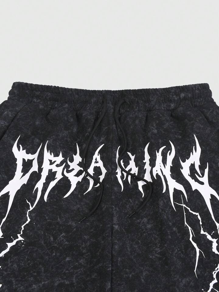 Grunge Punk Pantalones cortos casuales de hombre con lavado ácido, bolsillo y amarre delantero sencillo
