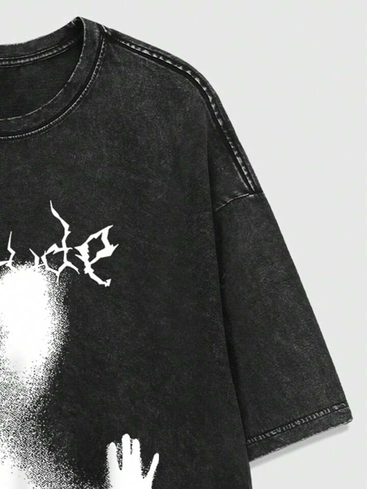 Grunge Punk Camiseta informal de cuello redondo, manga corta y estampado para hombre, para uso diario