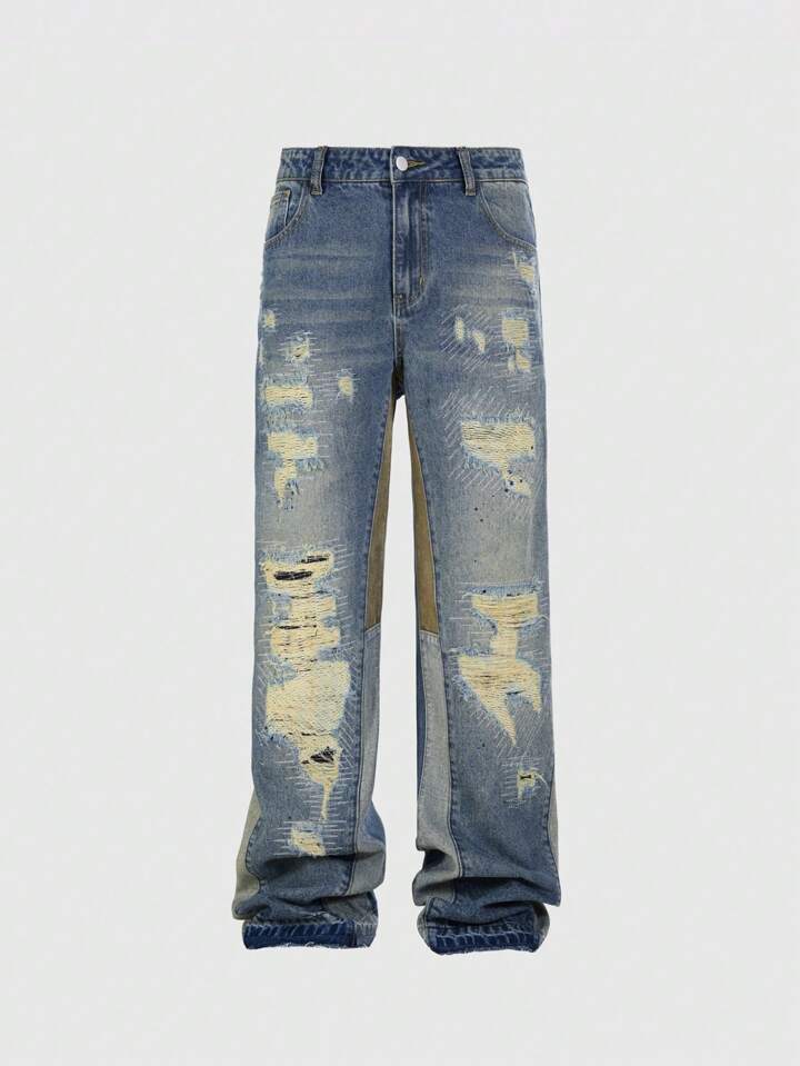Grunge Punk Jeans de mezclilla sencillo y elegante para hombre, adecuado para el verano