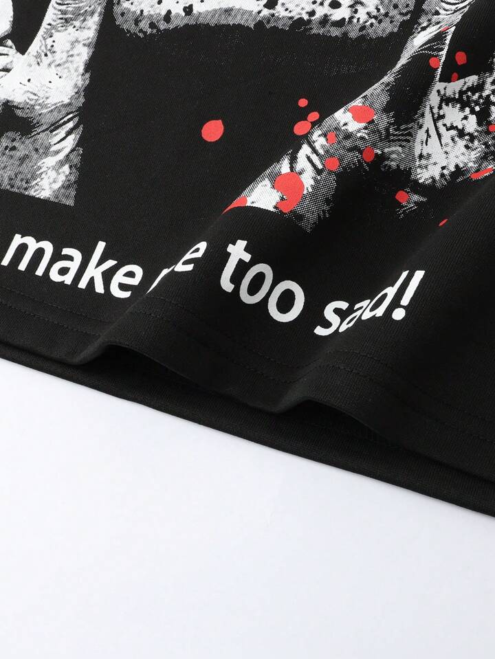 Grunge Punk Camiseta de manga larga, suelta y de peso pesado de longitud corta para hombre